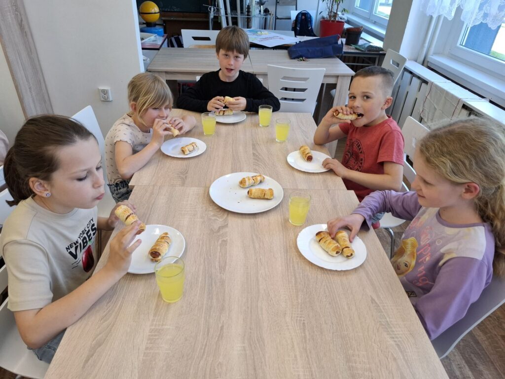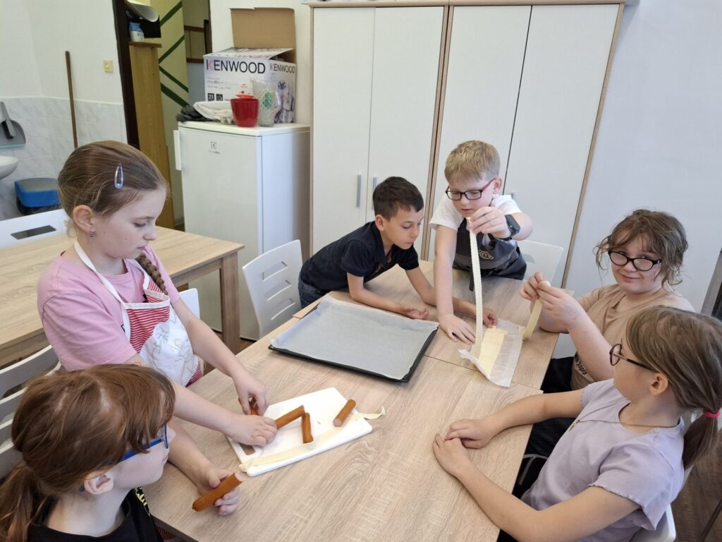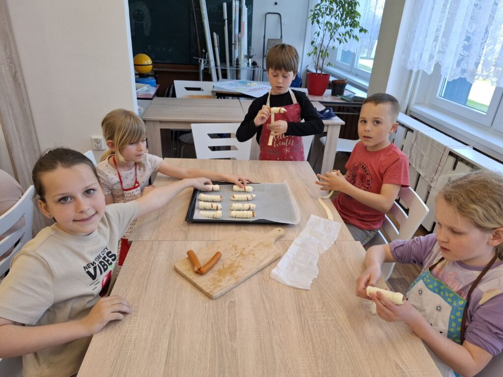 Kuchtíci si tentokrát vyzkoušeli, jak se připravuje listové těsto na slaný způsob. Oblíbenou pochoutkou, kterou můžeme připravit ke svačince nebo na oslavu, jsou párečky v těstíčku zapečené v troubě. Po této dobrůtce se jen zaprášilo.