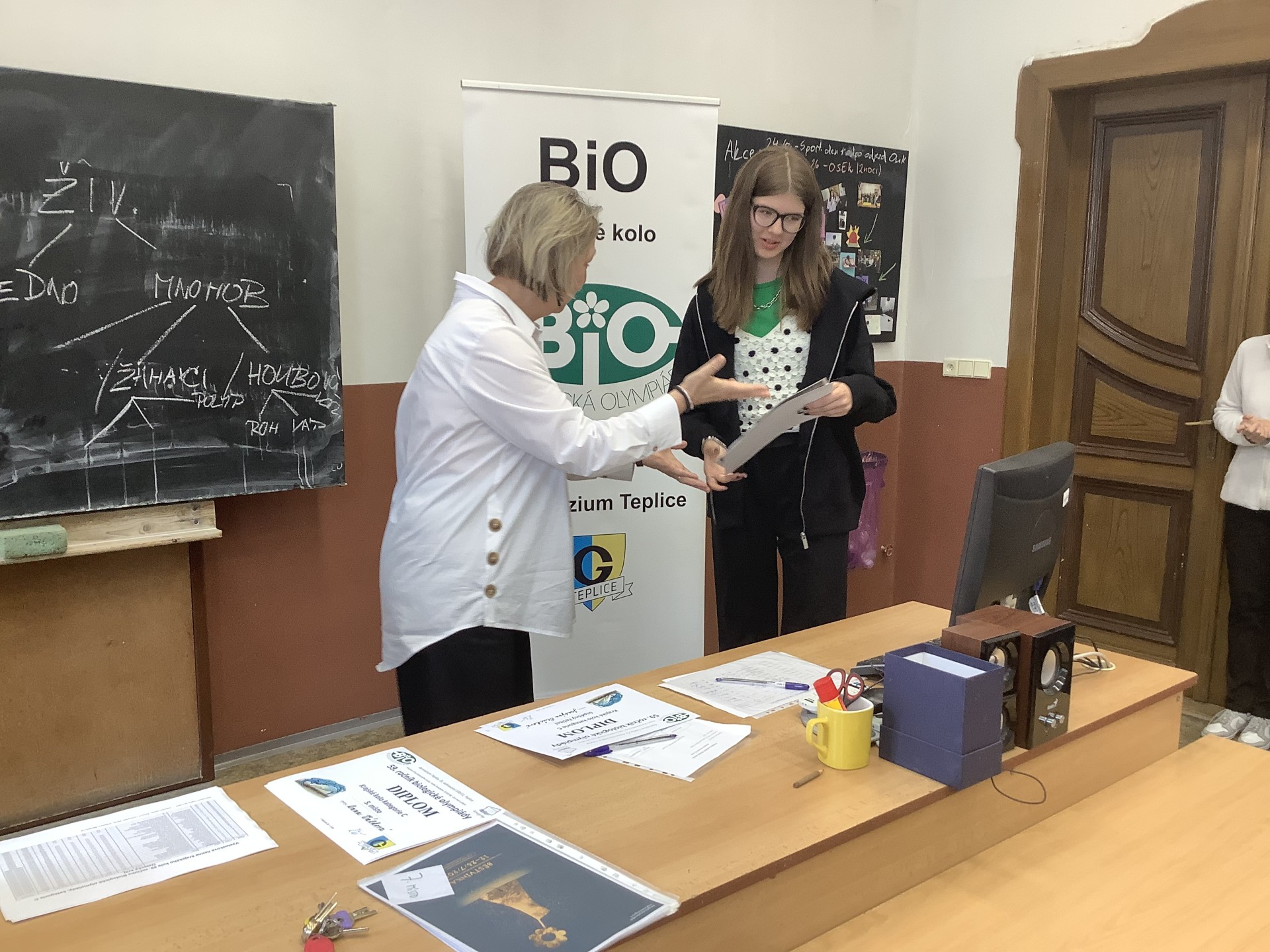 Bára se musela vypořádat nejen s náročným teoretickým testem, ale také s praktickou úlohou a poznávačkou. Její výsledek je důkazem nejen jejího zájmu o přírodní vědy, ale také její píle, pečlivé přípravy a odhodlání. Tohoto umístění si vážíme i proto, že většina soutěžících byla z víceletých gymnázií, kde se biologie vyučuje ve větším rozsahu.