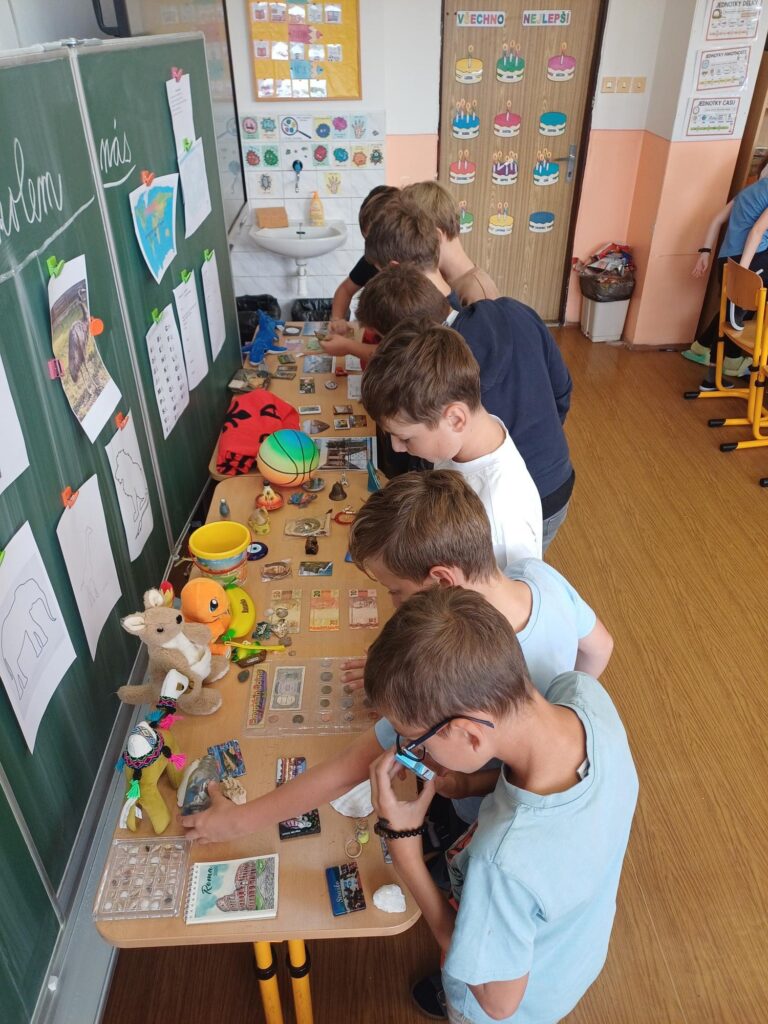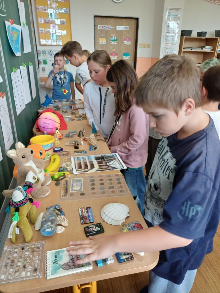 Děti si dnes vyzkoušely zábavné úkoly z českého jazyka, matematiky, vlastivědy, přírodovědy i výtvarné výchovy. Přinesly si také upomínkové předměty ze svých cest, o které se podělily se spolužáky. Celý den byl plný poznávání, tvoření a objevování světa kolem nás.