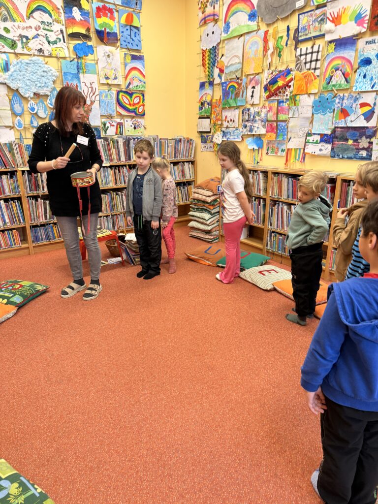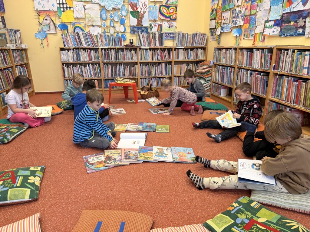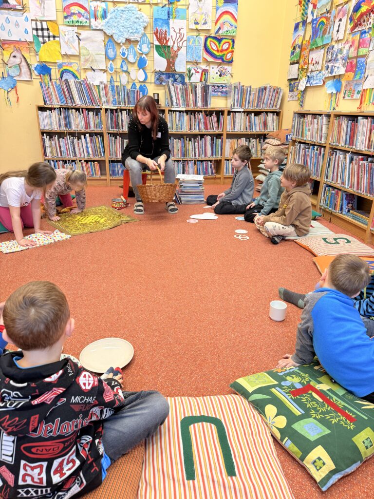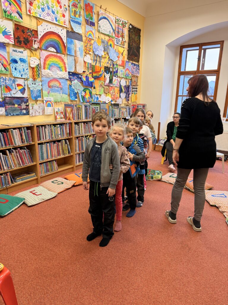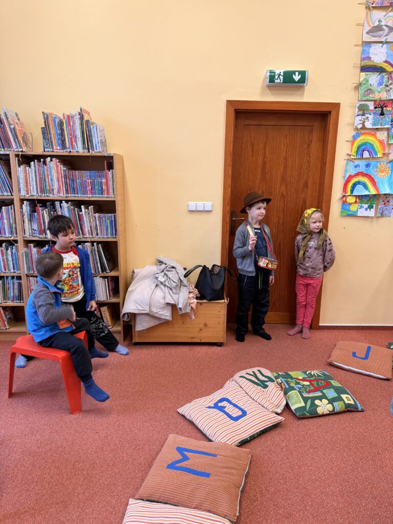 Děti z přípravky navštívily knihovnu v Lounech, kde je čekal zajímavý a hravý program. Společně si zahrály divadlo a povídaly si o tom, co se děje na jarmarku. Součástí programu bylo také seznámení s klasickým bubínkem – děti se dozvěděly, k čemu slouží a jak se na něj hraje. Návštěva knihovny byla pro děti příjemným zpestřením a odnesly si z ní spoustu hezkých zážitků. 😊