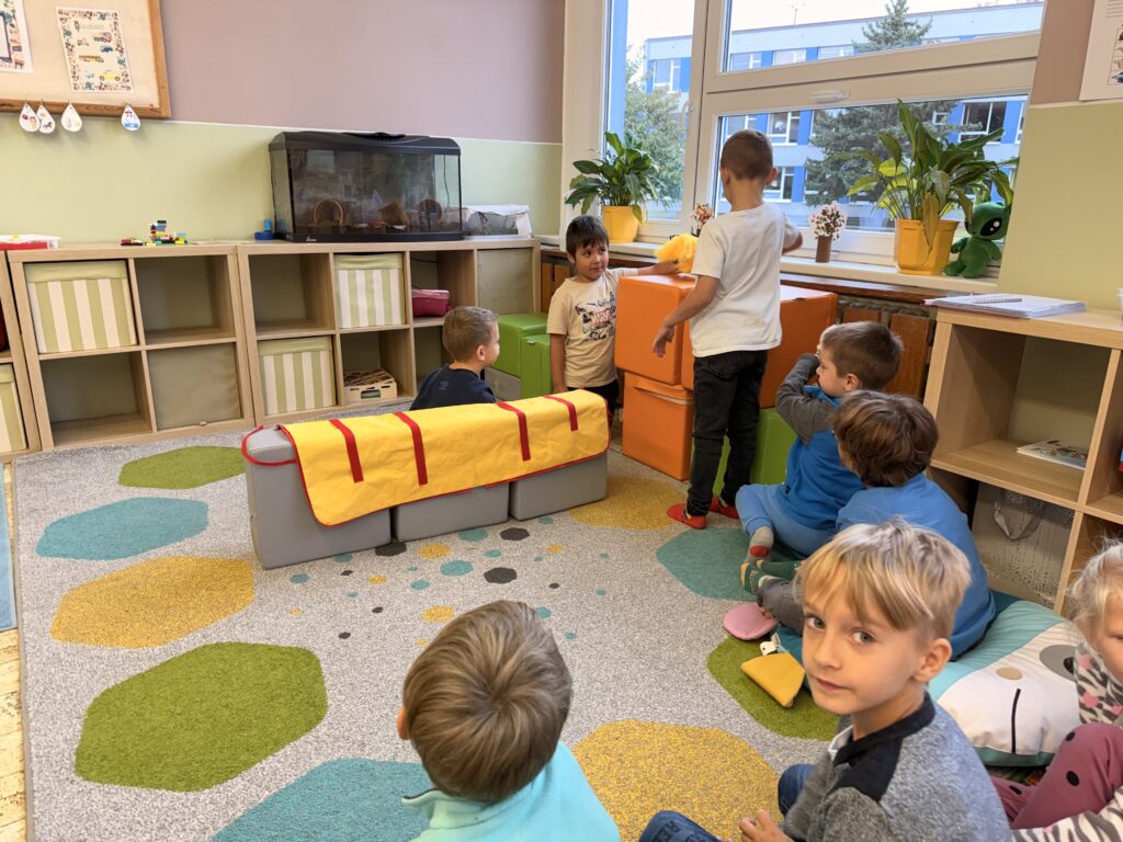 Tento týden se děti seznámily s novou pohádkou O perníkové chaloupce. Pohádku jsme si společně vyprávěli, povídali si o jejích postavách a nakonec jsme si ji i zahráli jako divadlo – nechyběla Ježibaba, Jeníček ani Mařenka! 🎭