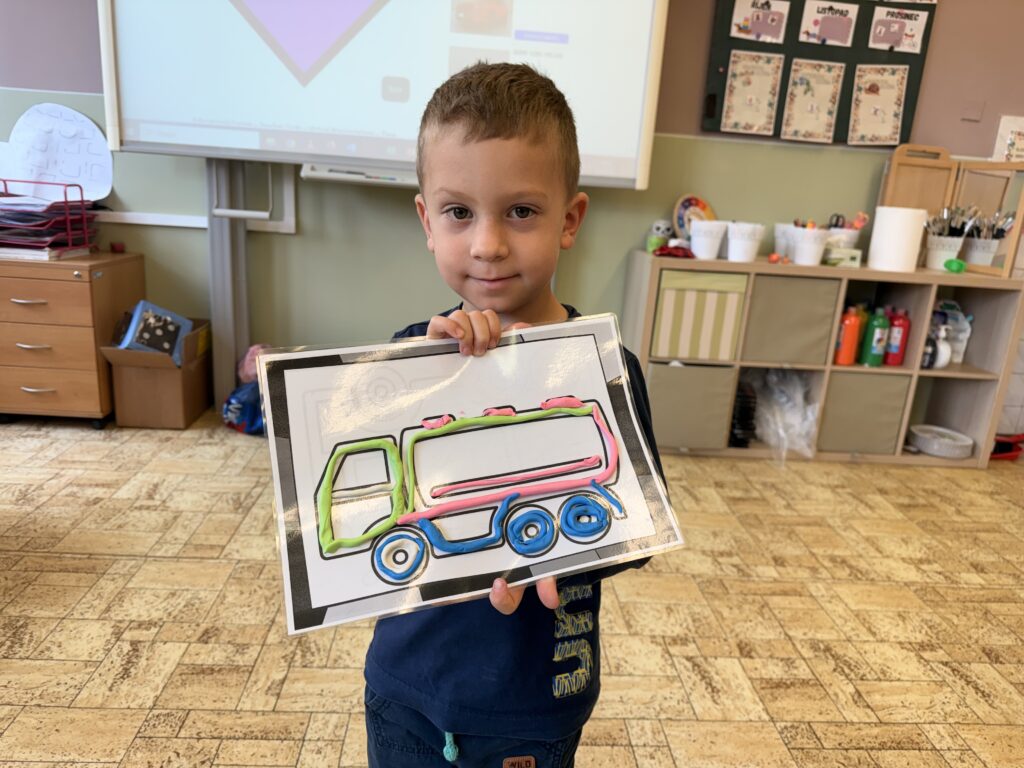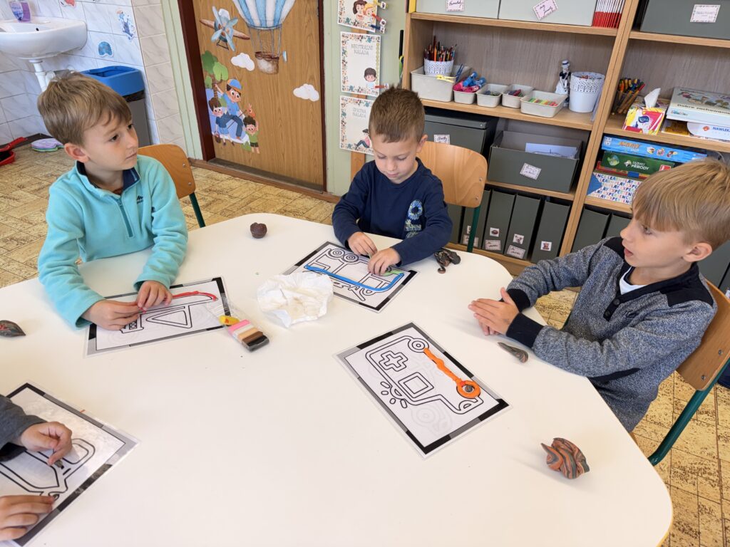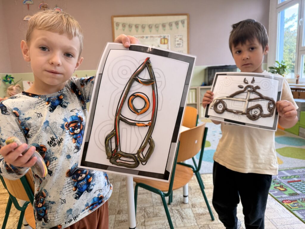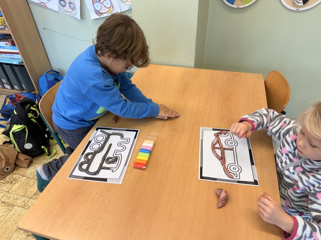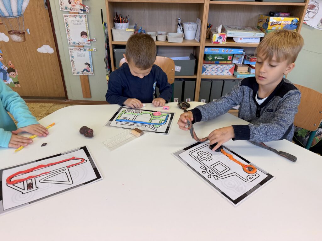 Ve výtvarné chvilce jsme modelovali dopravní prostředky z plastelíny – vznikla krásná auta, autobusy i letadla. ✈️🚗🚌