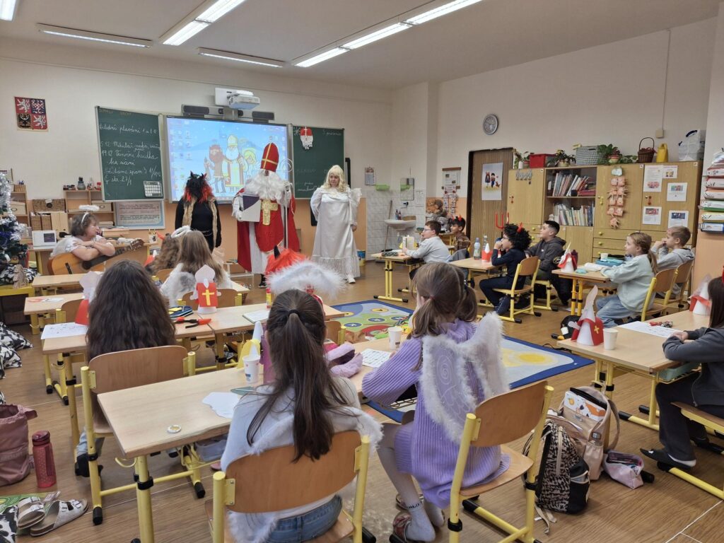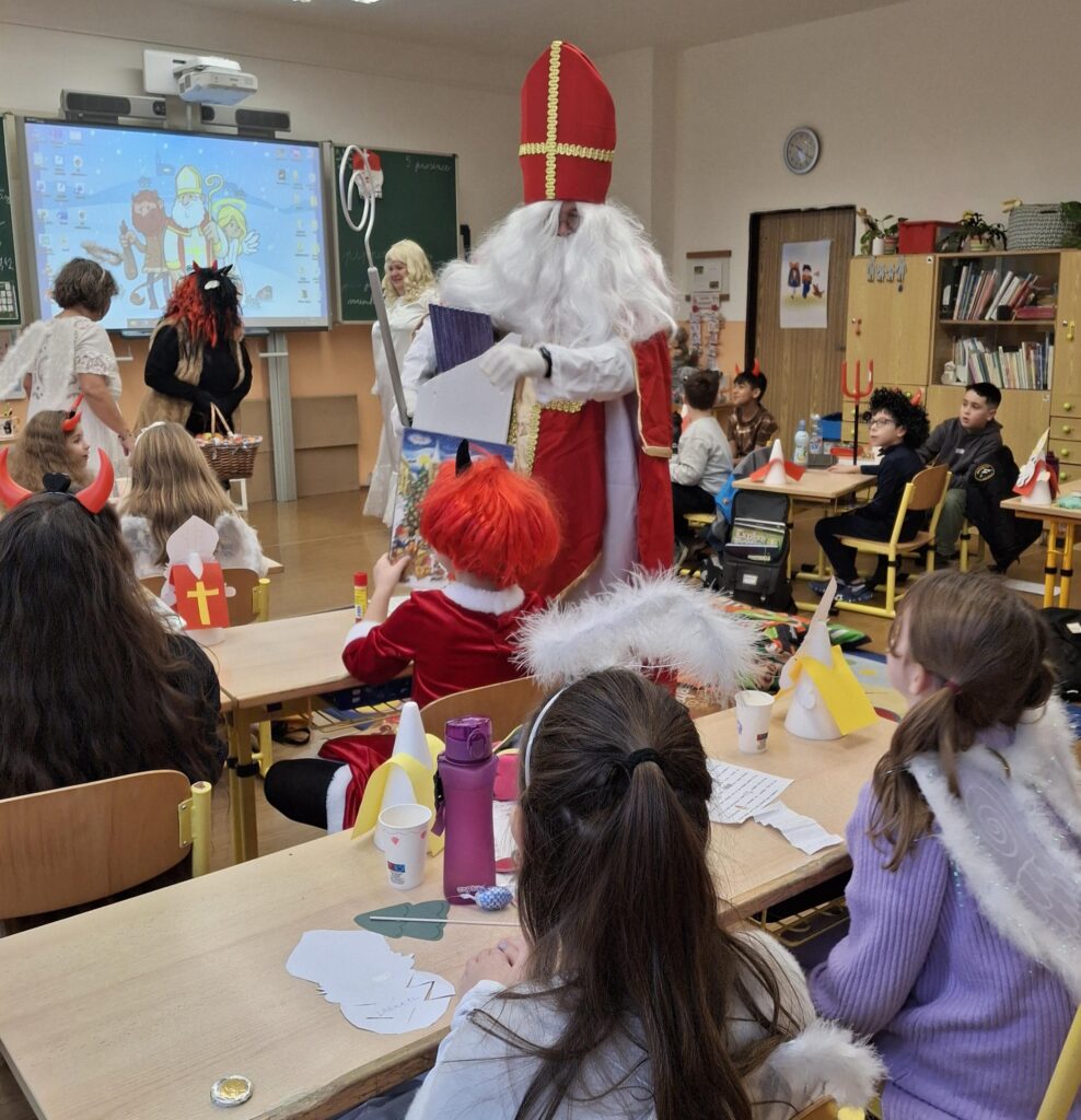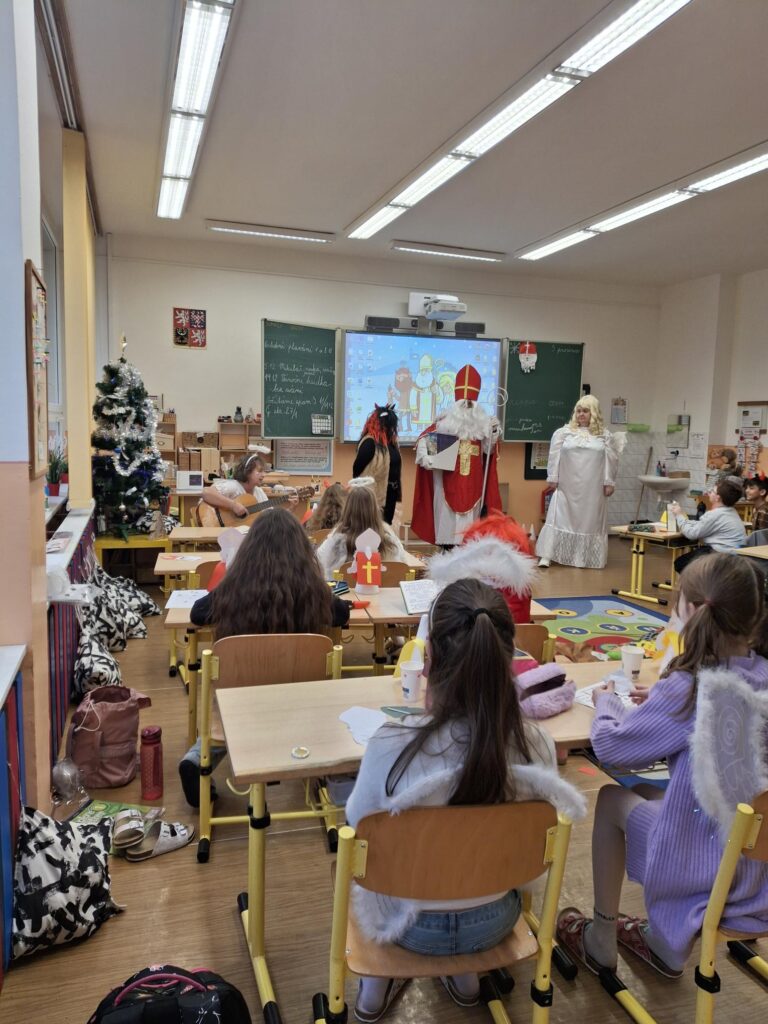 Navštívili jsme také divadelní představení s krásnou ladovskou pohádkou o Vánocích. Na závěr týdne nás přišel potěšit i Mikuláš s andělem a čertem.