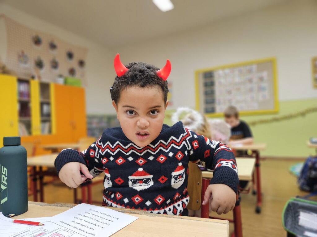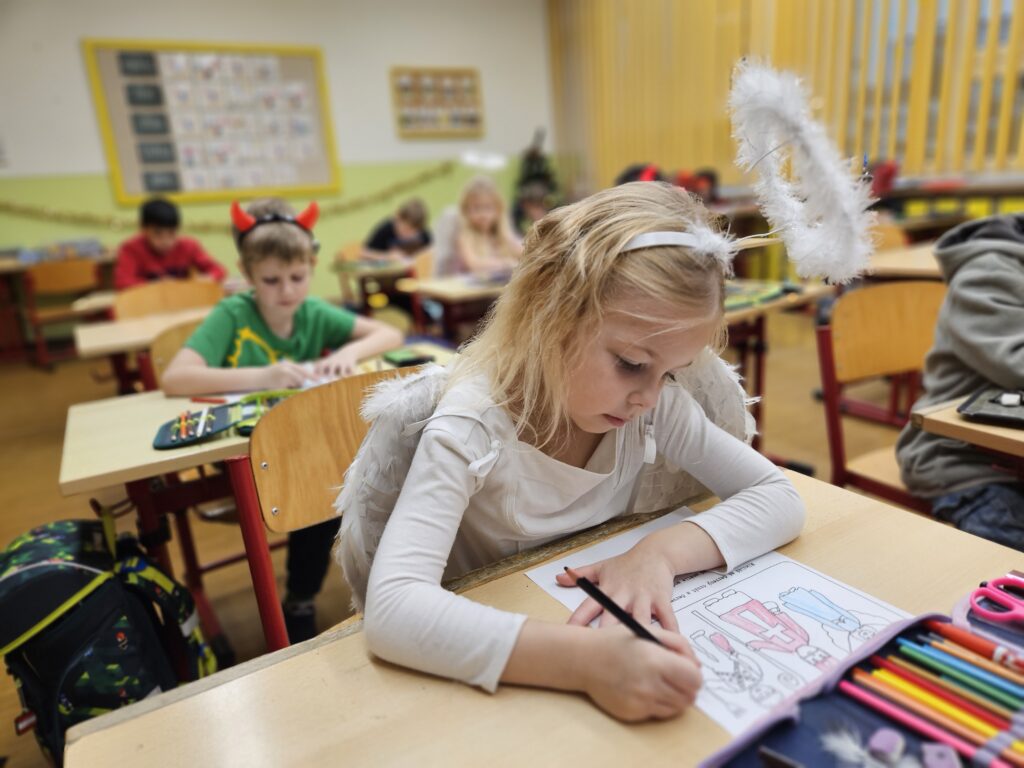 V pátek 5. 12. jsme šli do školy s velkým očekáváním. Věděli jsme, že nás čeká vzácná návštěva – Mikuláš, čert a anděl.