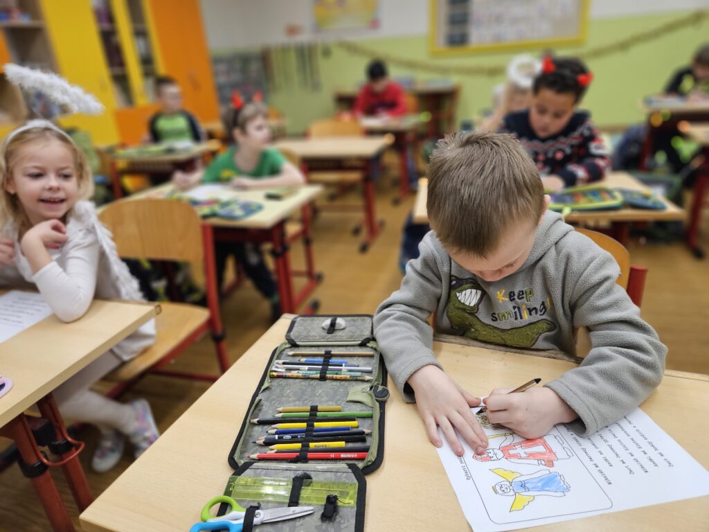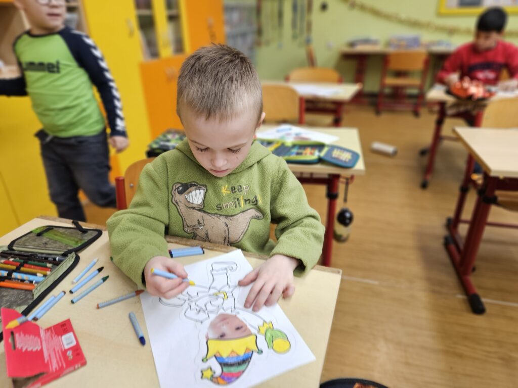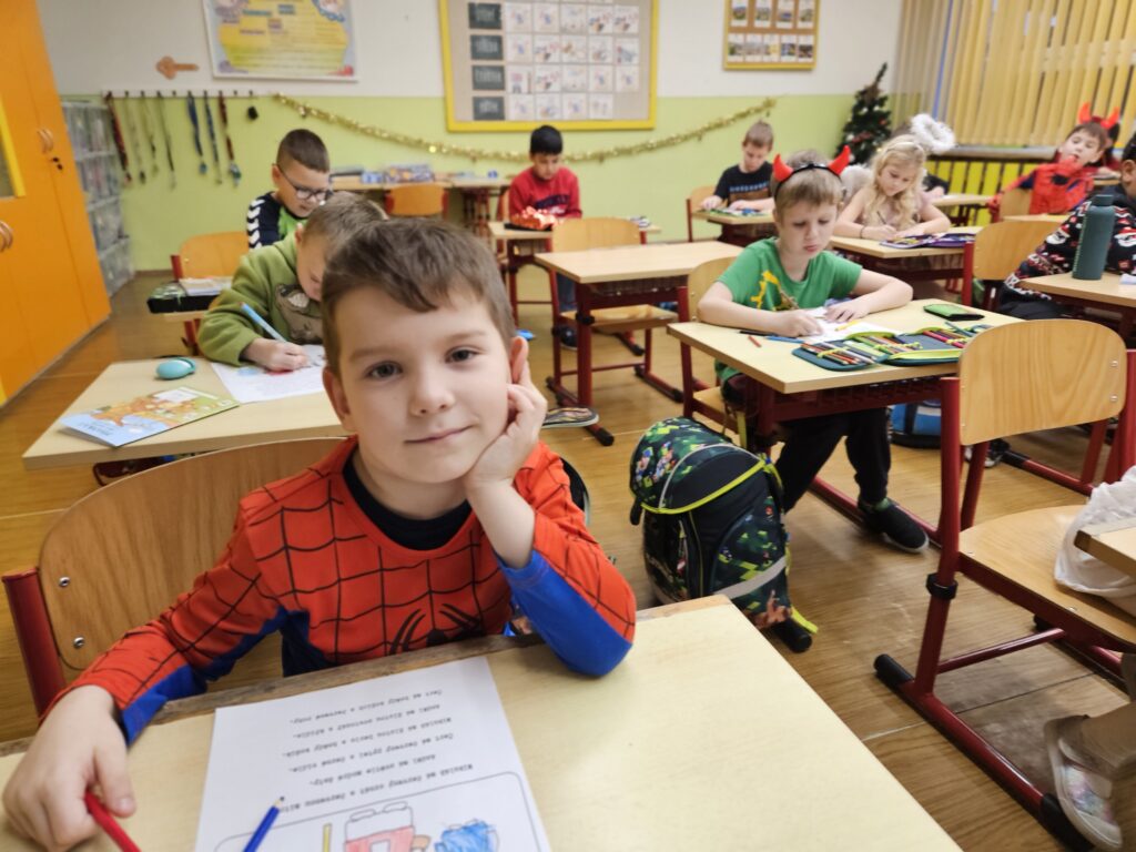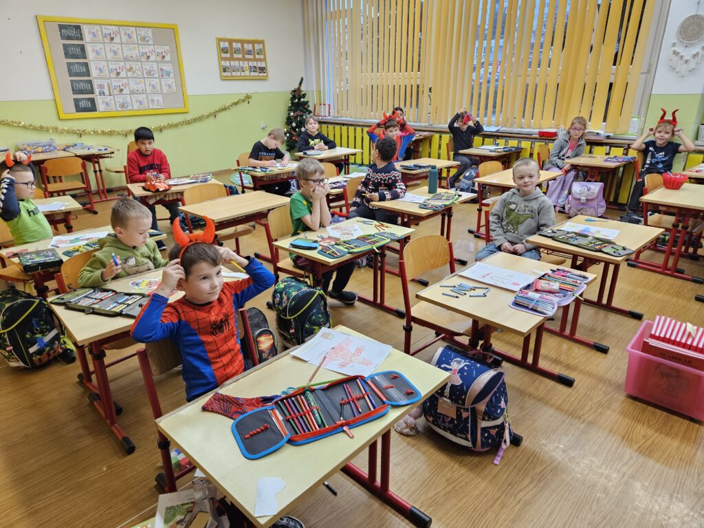 Po odchodu kouzelné trojice jsme si slabikáře společně prohlédli, vyrobili papírového Mikuláše na památku, zazpívali vánoční koledy, na které jsme si i zatančili a na závěr zhlédli krásnou vánoční pohádku.