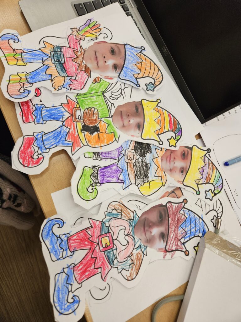 Čekání jsme si zkrátili zábavnými pracovními listy s mikulášskou tematikou a nácvikem básničky, kterou jsme chtěli Mikuláši přednést. Poté jsme se pustili do výroby veselých vánočních elfů, kteří úplně náhodou vypadali úplně stejně jako my! 😄