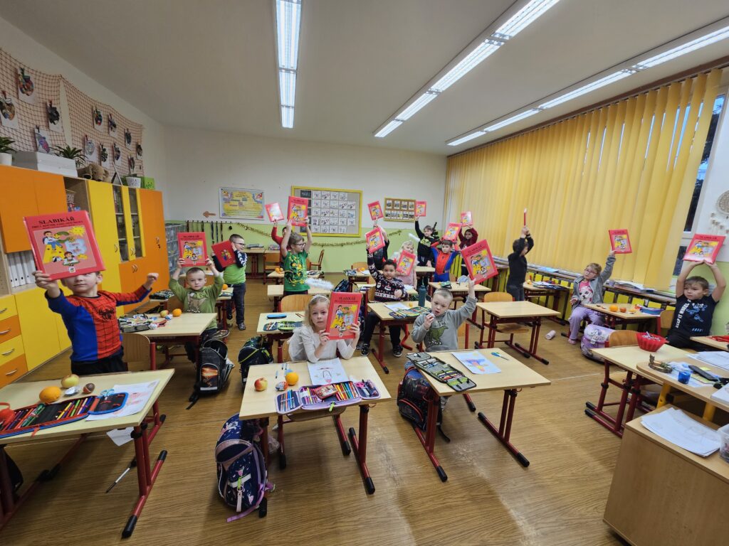 Poté jsme s radostí přednesli naučenou básničku a vysloužili si sladkou nadílku. A co víc! Dostali jsme i slabikáře, na které jsme se už dlouho těšili.