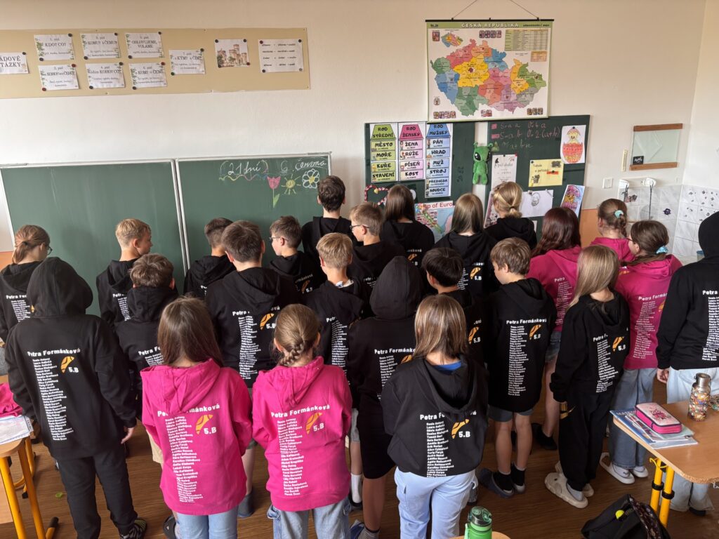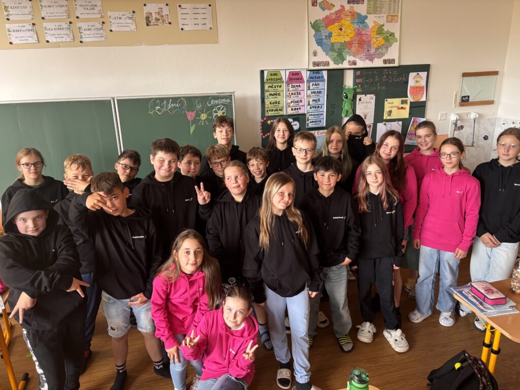 5.B se dočkala svých vysněných třídních mikin! Radost byla obrovská - hned si je všichni nadšene oblékli. Teď už jsou nerozlučny tým nejen duchem, ale i outfitem.
