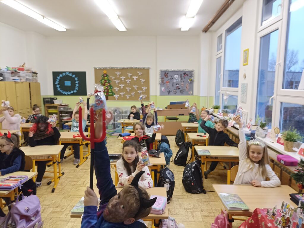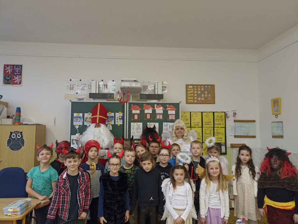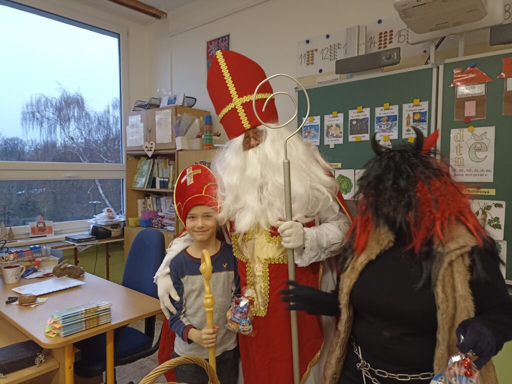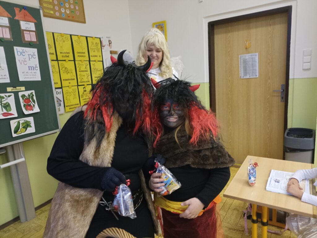 Mikuláš, čert a anděl nás dnes poctili svojí návštěvou. Připravili jsme si pro ně společnou básničku. Sladká odměna nás potěšila.