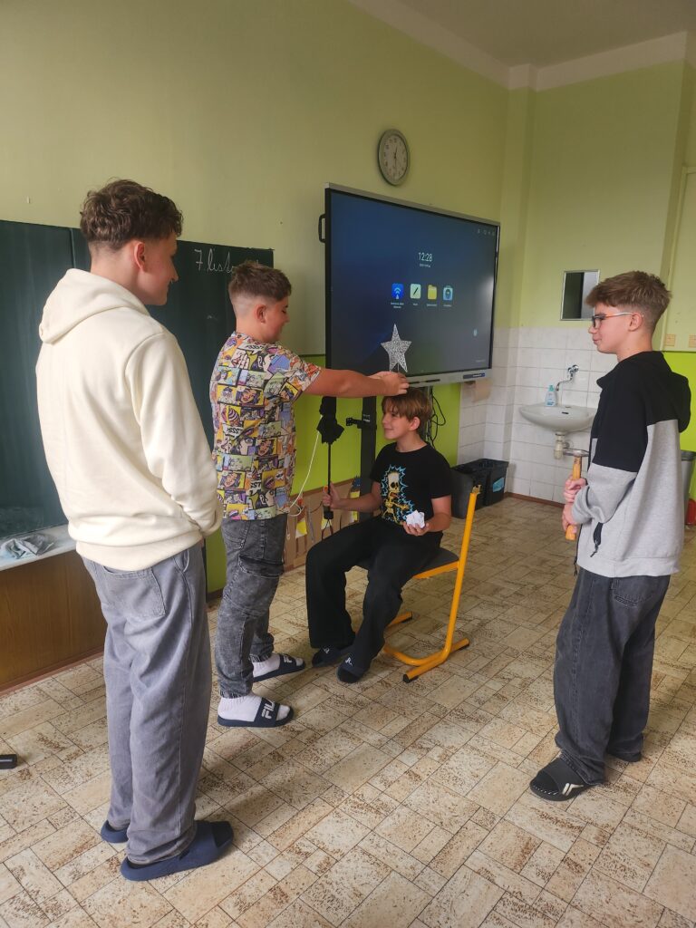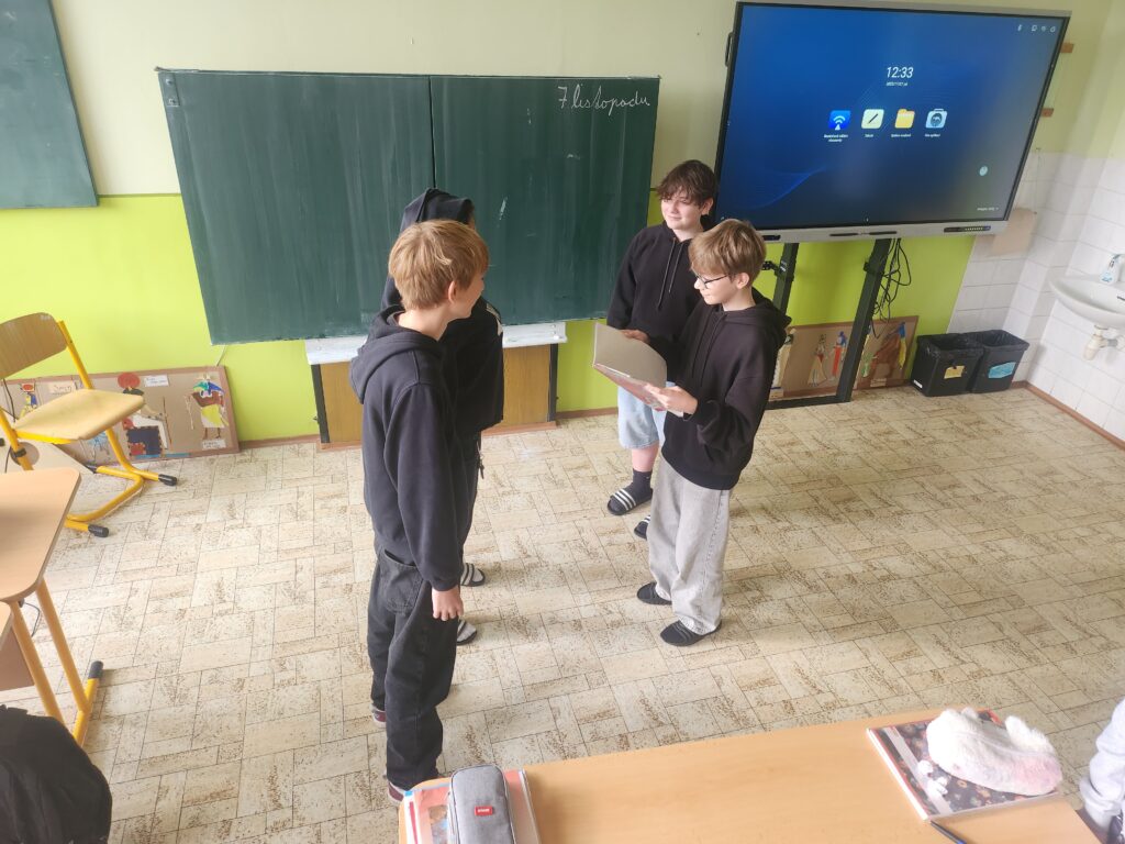 Třída 7.A se vydala na cestu do minulosti – přímo do středověku! Na tematických stanovištích se žáci dozvídali, jak tehdy lidé žili, pracovali i vládli – od obyčejných poddaných až po šlechtu a duchovní. Na závěr si zábavnou formou vyzkoušeli „živé obrazy“, v nichž ztvárnili třeba rytíře, korunovaci krále nebo rušný život na tržišti. Den byl plný nových poznatků, tvořivosti a společné zábavy!