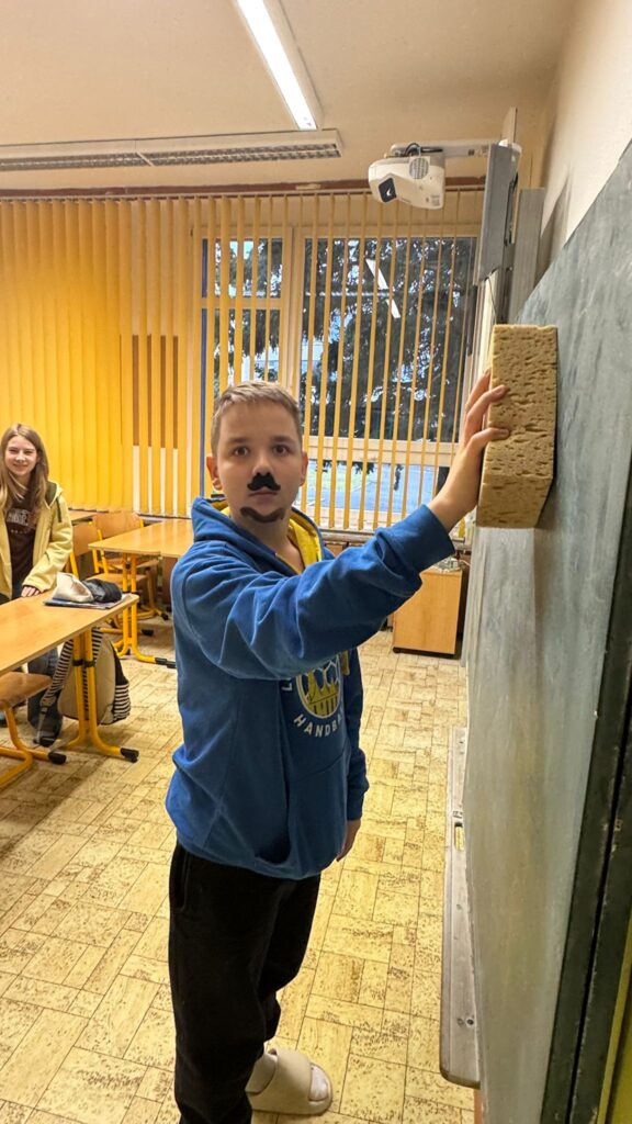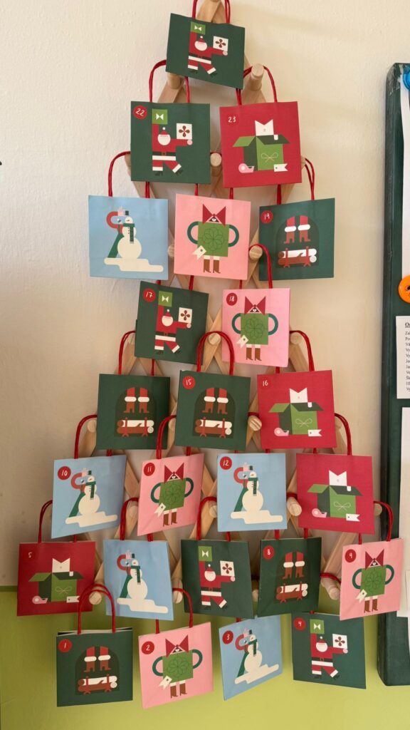 Adventní čas je tu a s ním se nám ve třídě objevil adventní kalendář. Každý den je tam připraven úkol, který musí děti splnit. Pokud se vše povede, čeká na ně  sladká odměna.  Úkoly nejsou vždy úplně jednoduché např.  - pokud učitel vysloví žákovo jméno -  musí dotyčný 5x poskočit. Nebo musí nosit celý den nějakou legrační čelenku či vousy atd.  A to jsme teprve na začátku! Těšíme se, co nám přinesou další dny.....