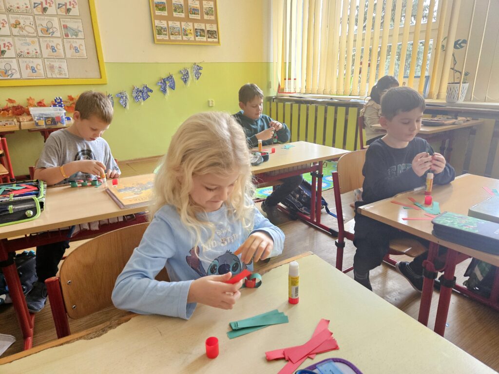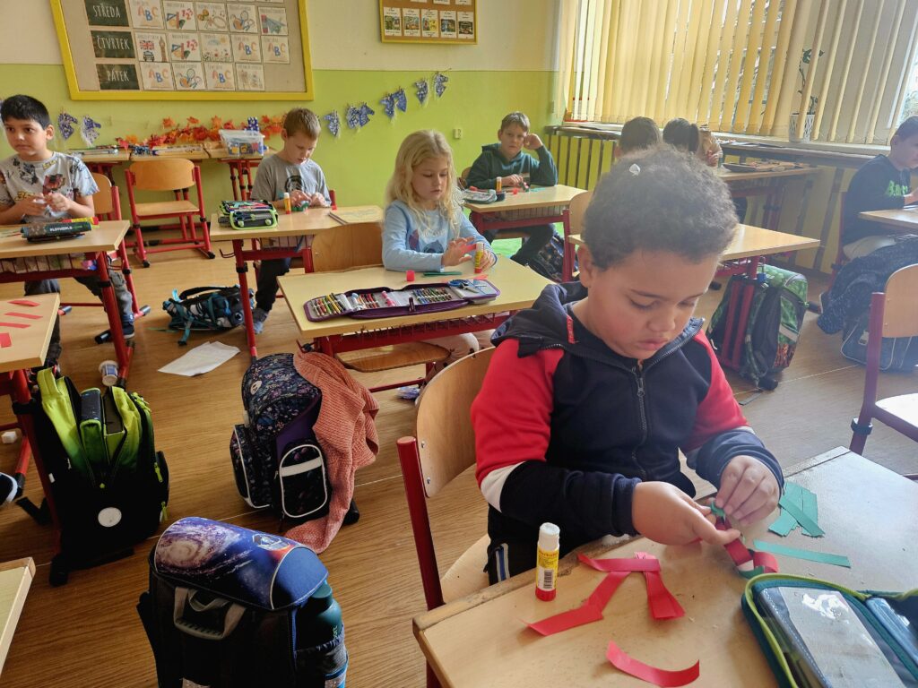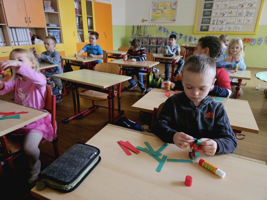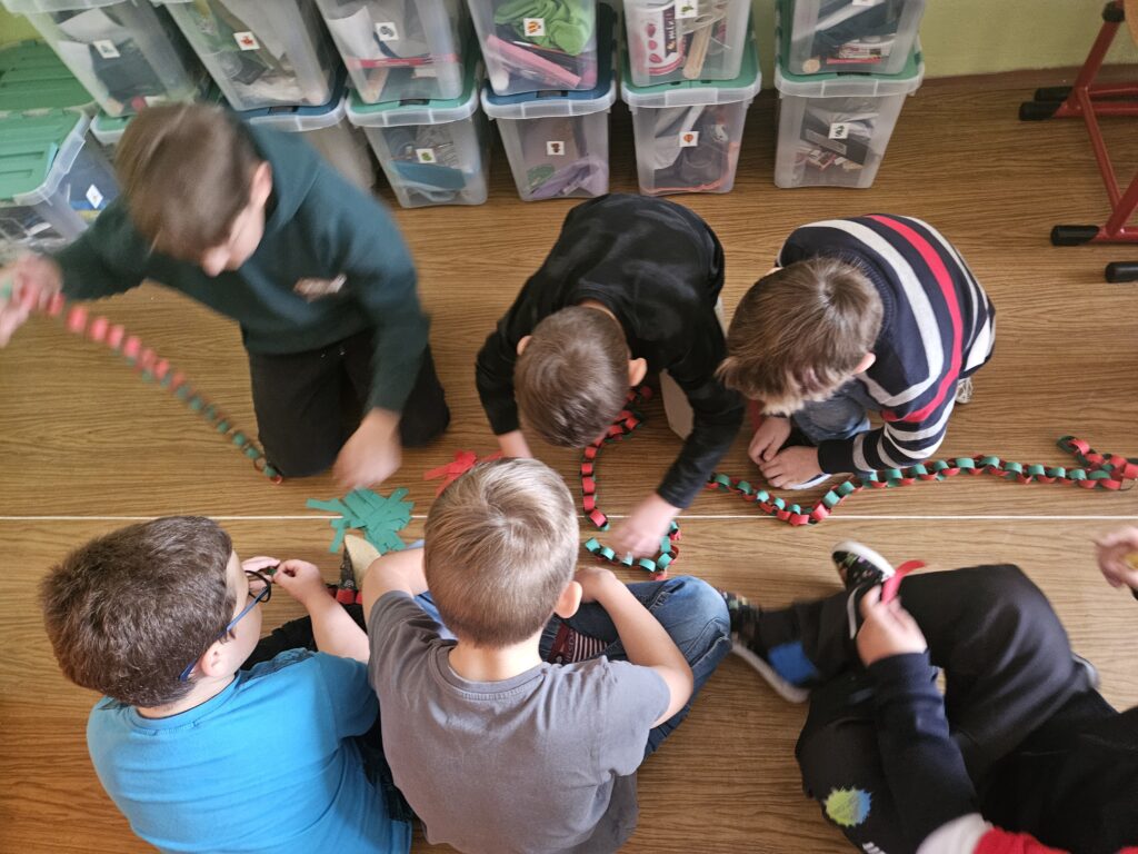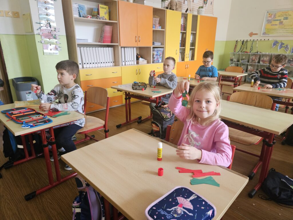 První adventní neděle už klepe na dveře, a tak jsme si s dětmi přenesli kousek vánoční atmosféry přímo do třídy. Za zvuků veselých koled jsme společně ozdobili stromeček a přidali i krásný papírový řetěz, který si pro tyto účely děti samy vyrobily.