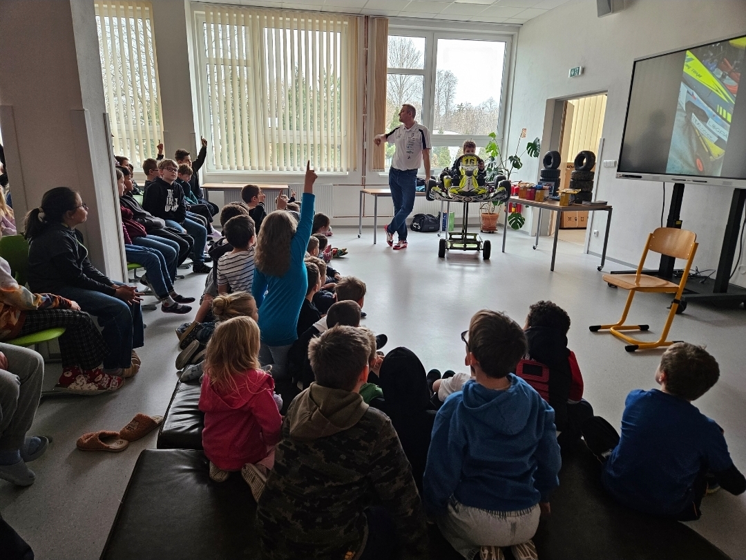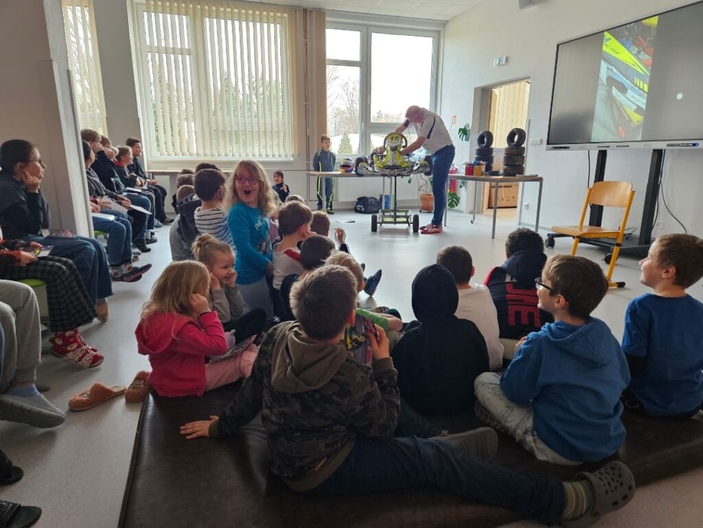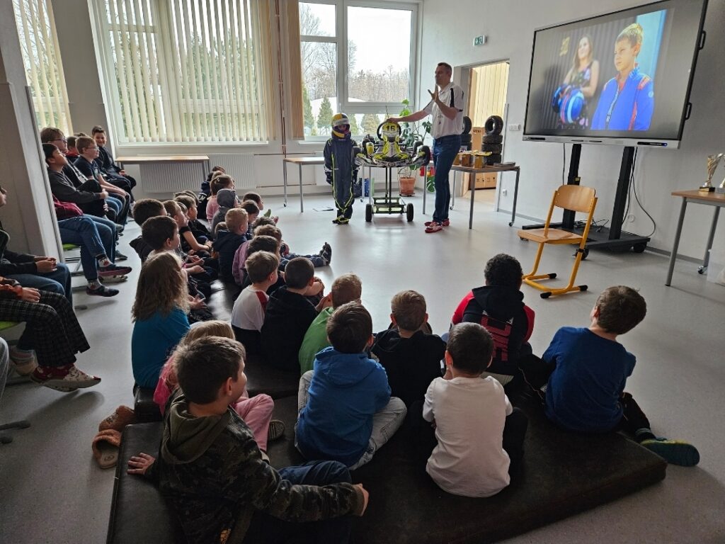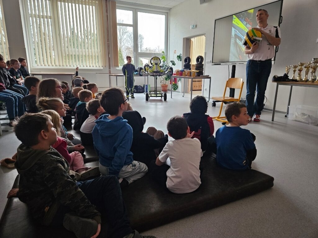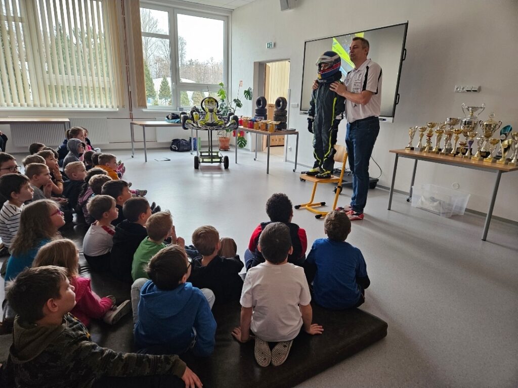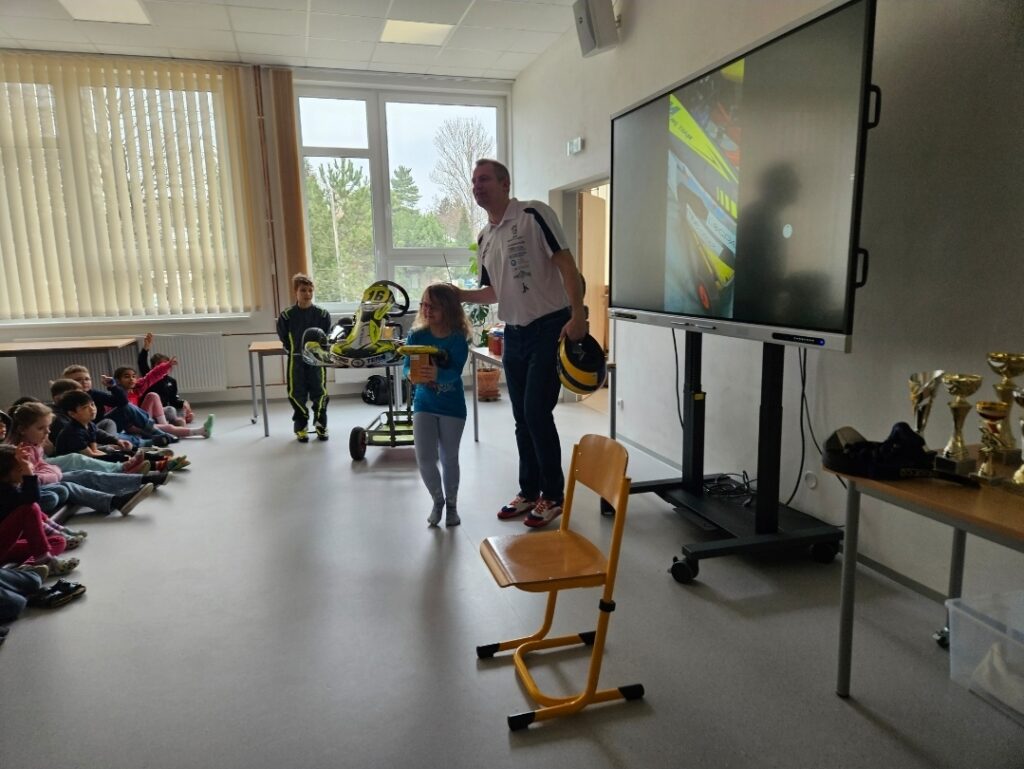 V pondělí 16. 3. jsme se s dětmi v naší nové aule zúčastnili velmi zajímavé besedy o sportovních závodech v motokárách. Zhlédli jsme poutavé video, dozvěděli jsme se, jaké ochranné vybavení musí mít závodník na sobě, jak rychle dokáže motokára jet, a na vše, co jsme se nedozvěděli, jsme se s chutí doptali.