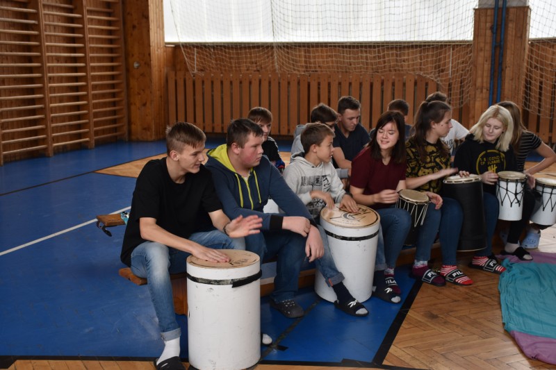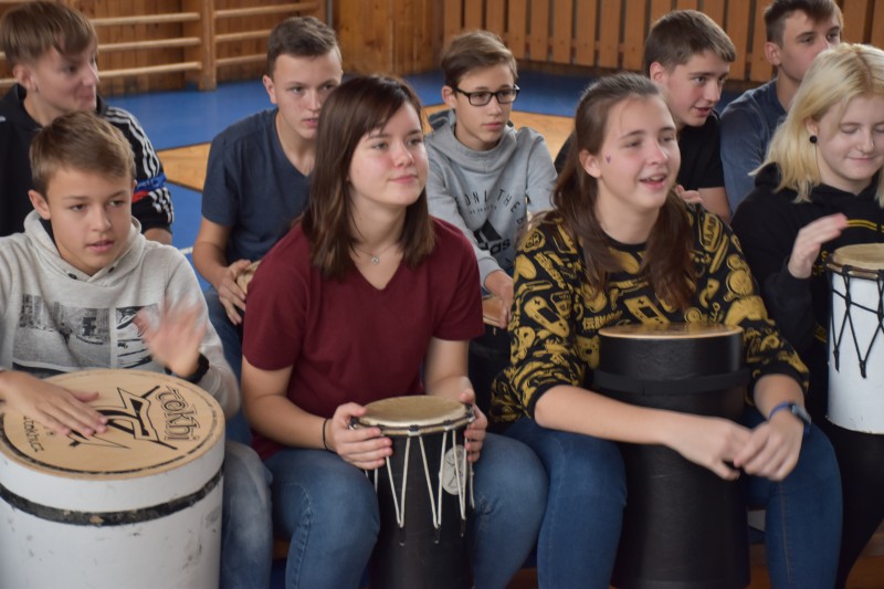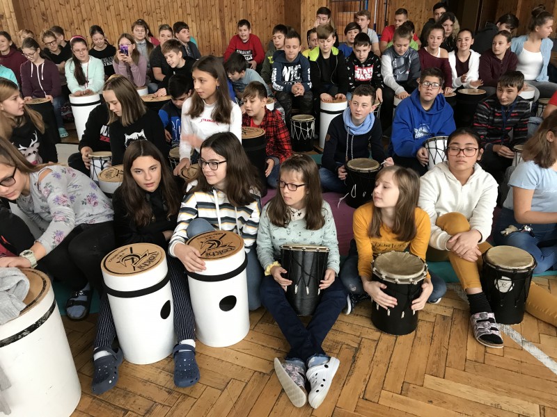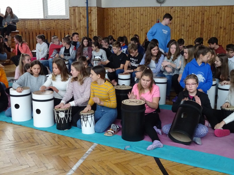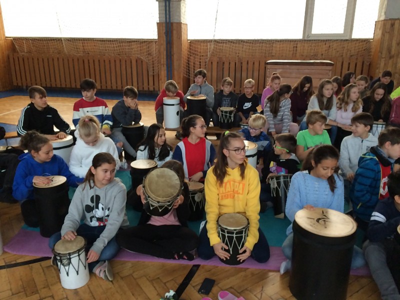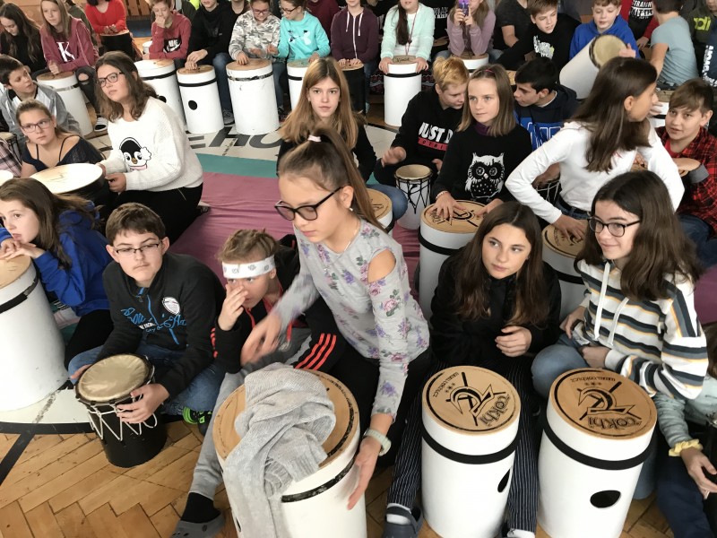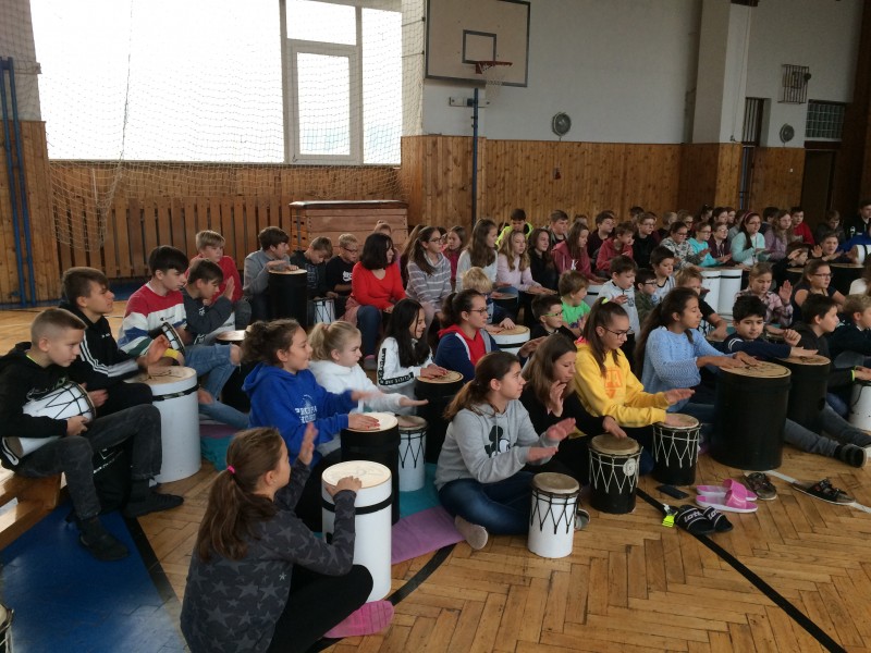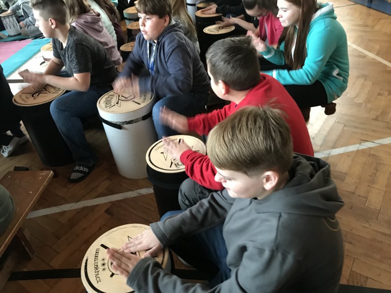 Ve čtvrtek jsme se zúčastnili hudebního workshopu pro děti Bubny do škol. Autorem projektu je bubeník Tokhi.
