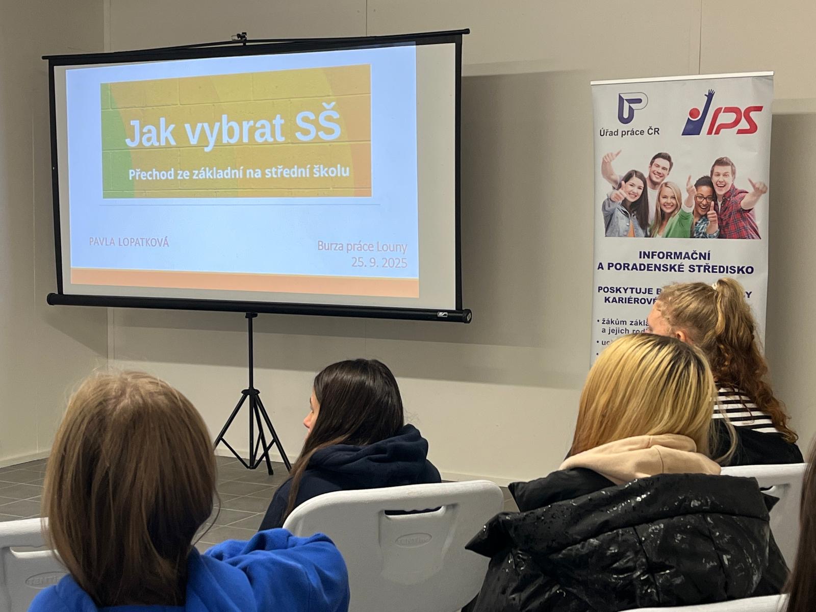 Před námi je jedno z nejdůležitějších rozhodování - kam na střední školu. Na burze práce se děti seznamovaly s možnostmi zaměstnání v Lounech a okolí. Krátká přednáška jim dala návod, jak a podle jakých kritérií si vybírat SŠ.
