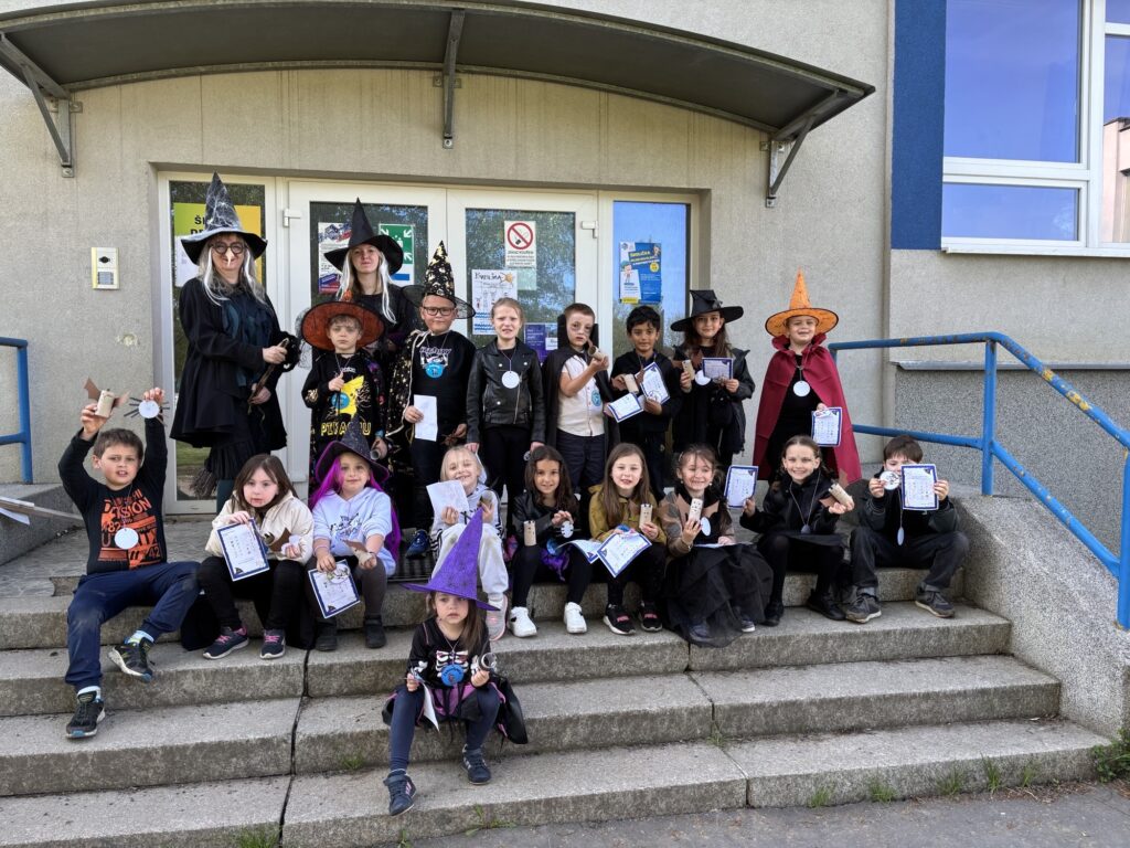 V naší třídě se ve středu konal slet čarodějů a čarodějnic, děti byste tu jen marně hledali...Čarodějnický program, který pro nás připravila 8.A s paní učitelkou J. Valdovou, se nám moc líbil. Po splnění 12 čarodějnických úkolů jsme za odměnu získali sladkosti a medaile.