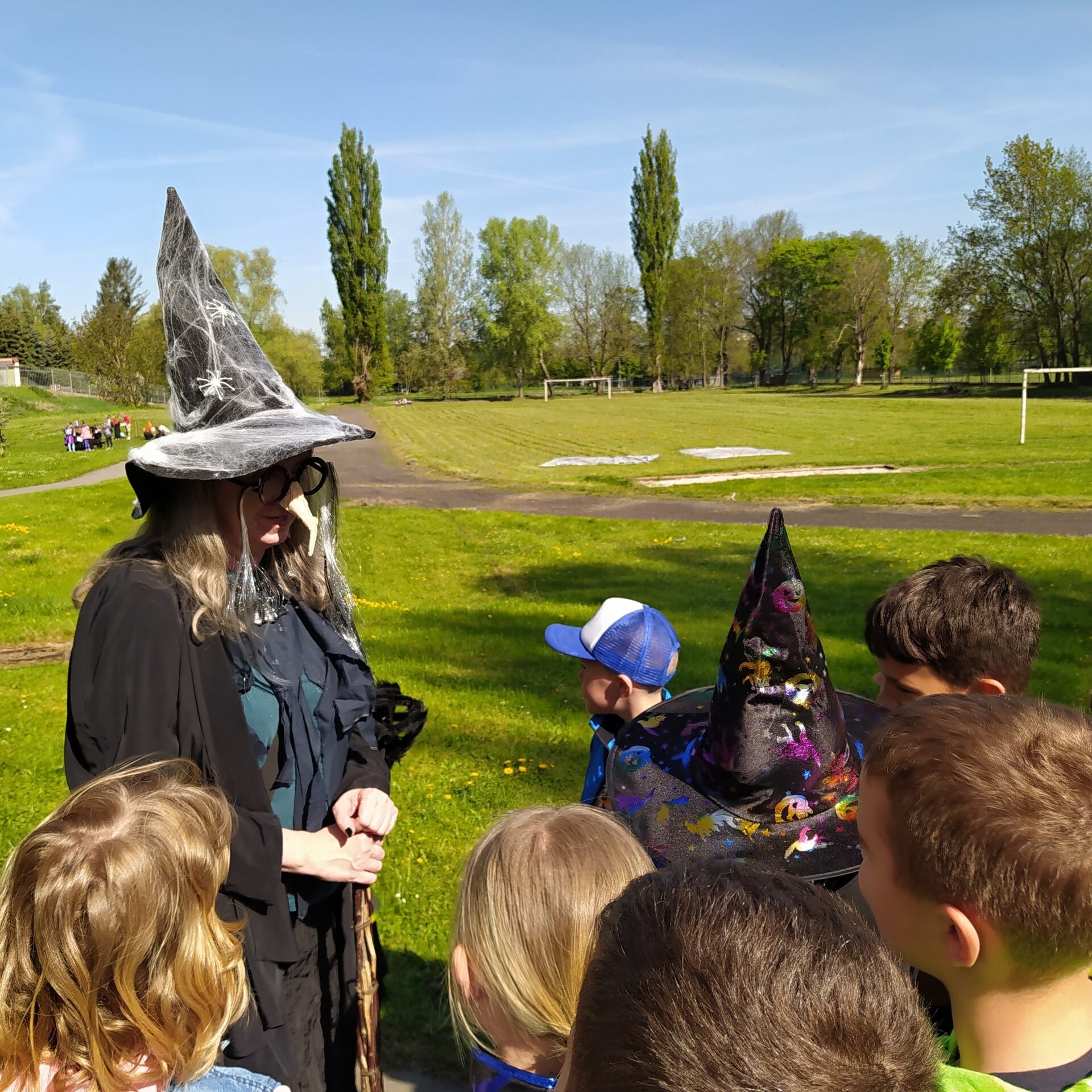 Čarodějnice Valdimůra se svými pomocníky pro nás připravila 12 úkolů.Úkoly jsme plnili na školním hřišti a vedli jsme si skvěle.