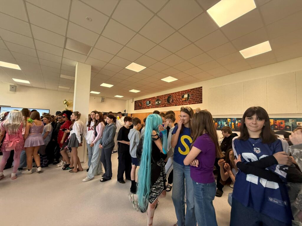 Školní parlament naší školy naplánoval tematický den s názvem Celebrity Day, který přinesl spoustu zábavy a kreativity. Už samotný příchod do školy byl výjimečný – žáci přicházeli po symbolickém červeném koberci za doprovodu „blesků fotoaparátů“ a slavnostní atmosféry.