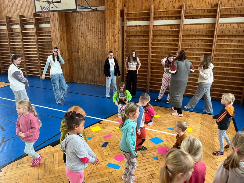 Žáci 8.B a 9.C připravili program pro děti z mateřských škol s názvem “Cesta za pokladem”. Na naši školu zavítaly děti ze 3 mateřských škol (MŠ Školní, MŠ V Domcích a MŠ Kpt. Nálepky), pro které starší žáci připravili zábavné aktivity zaměřené na podporu matematického vzdělávání.