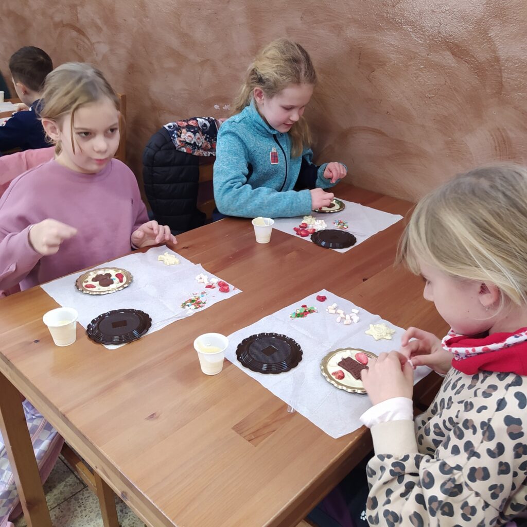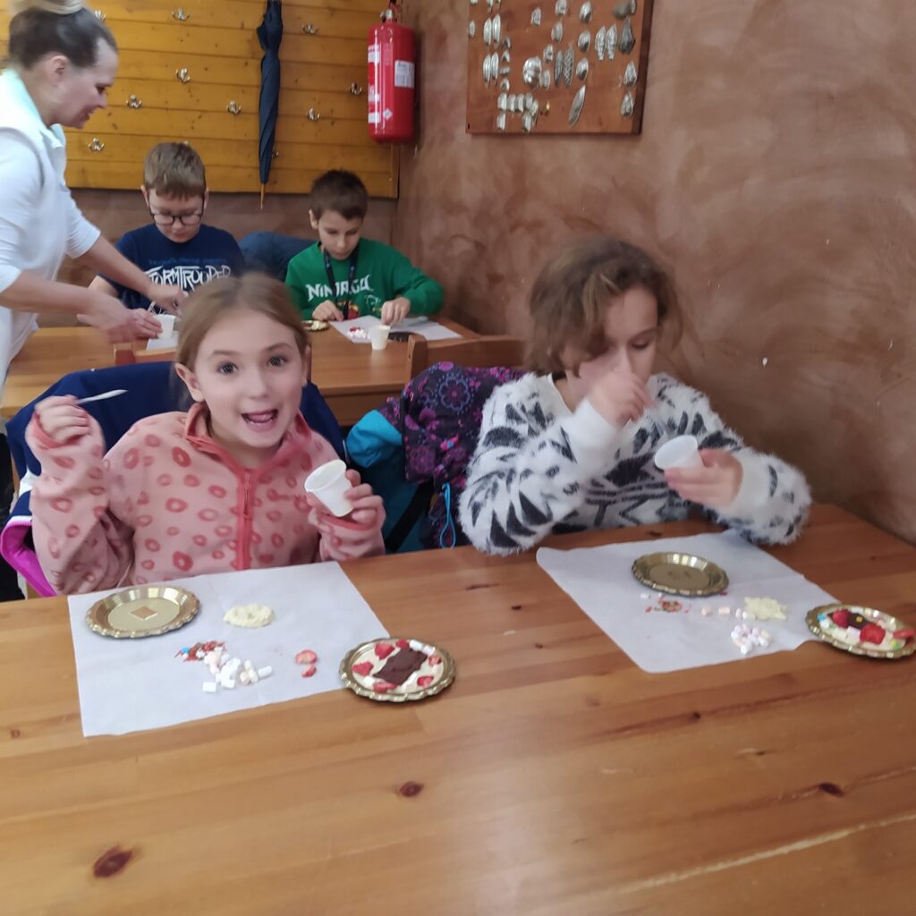 Poté jsme se přesunuli za čokoládou, vytvořili jsme si a ozdobili svoje čokolády.