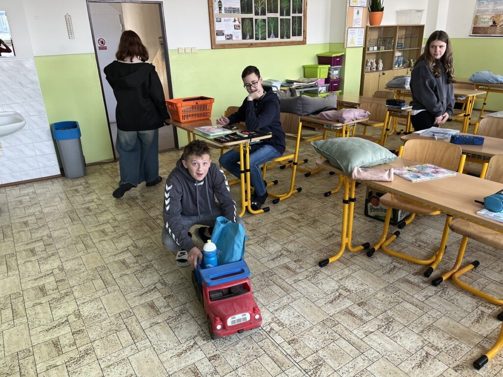 Ve středu 21. května si děti přinesly do školy věci trochu jinak. Místo školních tašek to byly polštáře, dětská auta, pelíšek pro zvířecího mazlíčka, pivní přepravka, košíky... Kreativitě se meze nekladou a docela jsme se pobavili:)