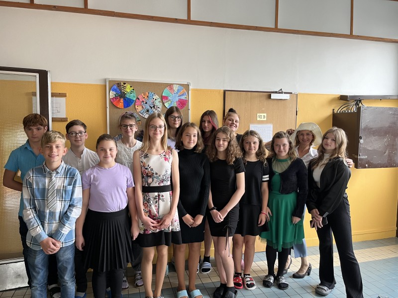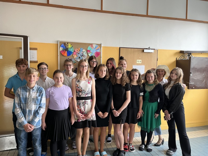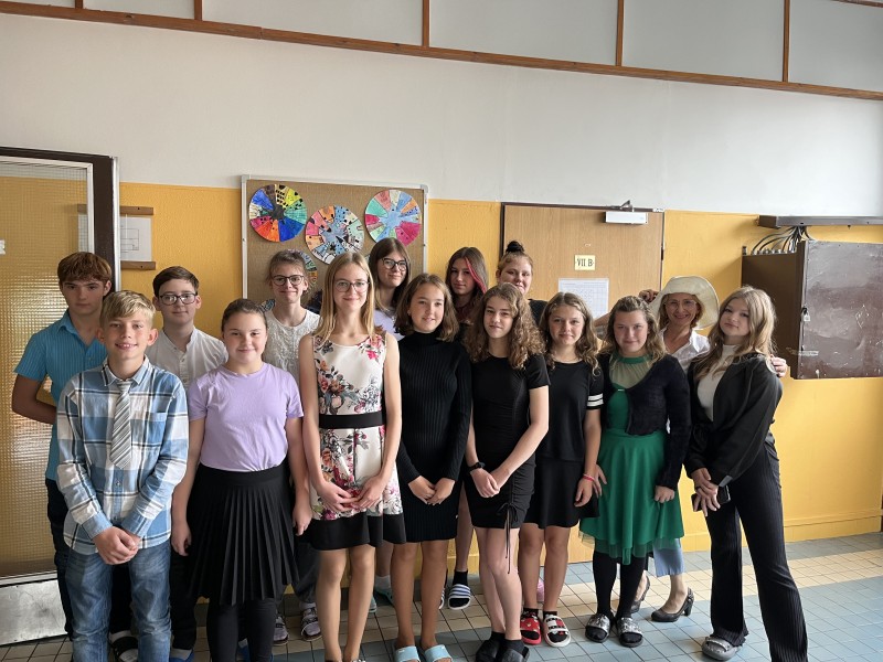 Pátek 13. října pro nás nebyl smolný den, ale dle nápadu kamarádů z 8.B "Den elegance". Většina dětí se oblékla do svátečních šatů a moc jim to slušelo. Potkávat na chodbách školy krásné mladé dámy a mladé pány byl zážitek nejenom pro děti, ale i pro učitele a všechny zaměstnance školy.