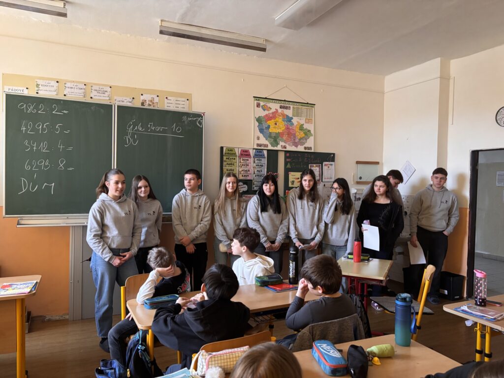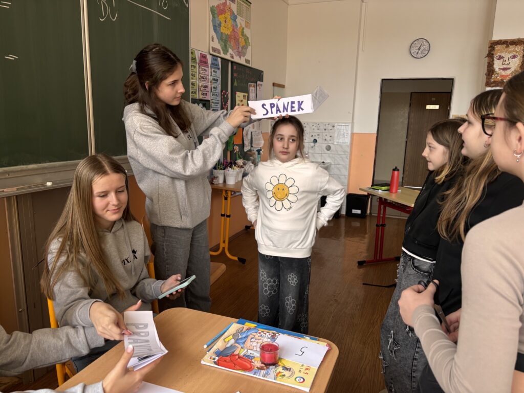 Dnes, k příležitosti Dne mateřského jazyka, probíhala na naší škole zajímavá akce. Žáci 9. A si připravili různé zábavné aktivity pro třídu 5. B. Mezi nimi nechyběly tajná mluva, jazykové přesmyčky, přísloví zobrazená v piktogramech, hádanky ani úkoly typu "Jak se to stalo?". Akce byla plná zábavy i poučení a obě třídy si užily společný čas, při kterém si připomněly krásu a bohatství našeho jazyka.