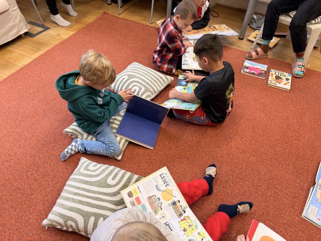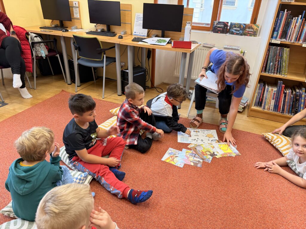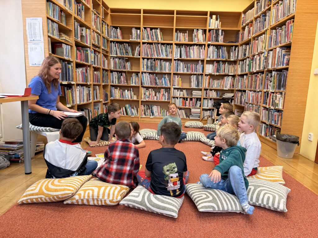 V knihovně 🏛️ se děti naučily, jak se rodí knížka 📕✨ – z čeho vzniká, než se dostane do našich rukou 🙌 a může nám pomáhat objevovat svět 🌍, poznávat nové věci 🧠 a snít s otevřenýma očima 💫.