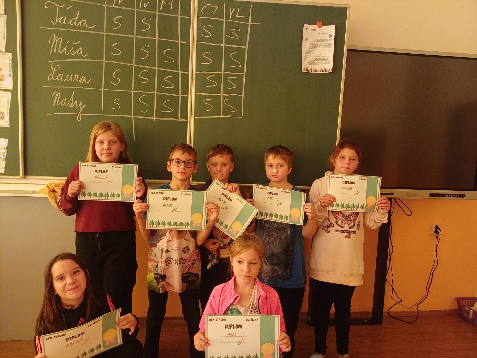 Den stromů jsme oslavili venku i ve třídě. Pomocí QR kódů jsme hledali informace o stromech, řešili křížovky, v přírodovědě poznávali druhy stromů, v matematice měřili a počítali, ve vlastivědě zjišťovali, jaké stromy rostou v našem kraji, v českém jazyce psali krátké texty a v tělocviku si zahráli hry v přírodě. Pracovali jsme ve skupinách a zjistili, jak důležité jsou pro nás stromy. 🌿