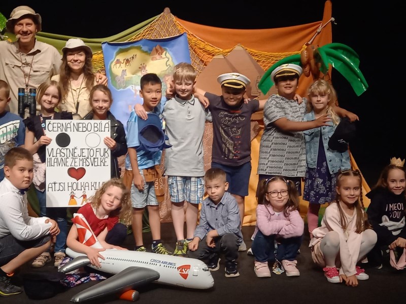 Dnes se naši průzkumníci dostali až do Afriky. V průběhu představení si zaskotačili se zvířátky. Nechyběly veselé písničky a tanec.