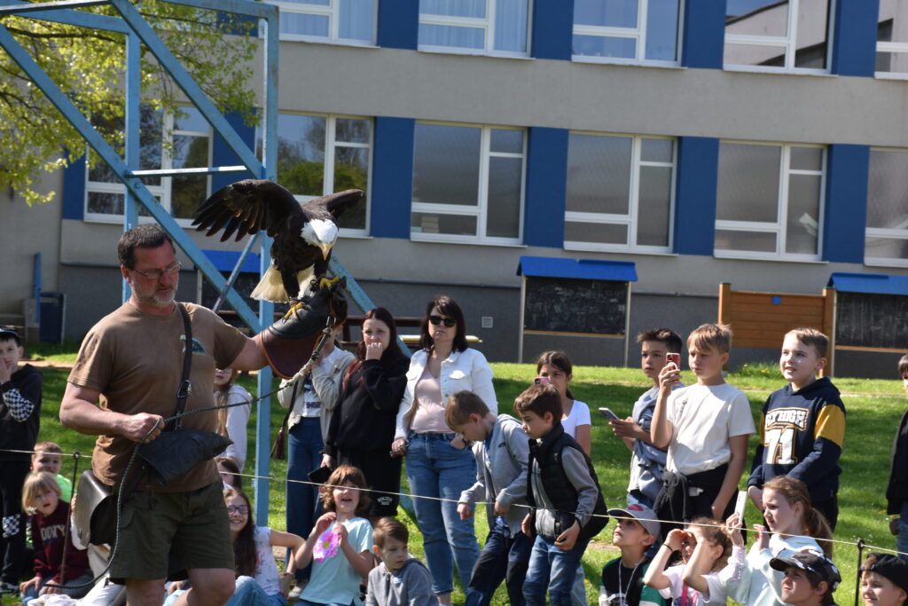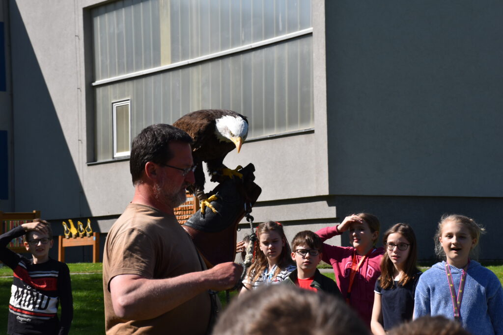 V úterý 29. dubna naši školu navštívila sokolnická společnost Zayferus, aby nám předvedla svoji skvostnou a velmi vzácnou sbírku dravých ptáků. Za překrásného počasí jsme zažili poučné dopoledne plné velmi zajímavých informací o životě těchto monumentálních živočichů, doplněné o dechberoucí letové ukázky.