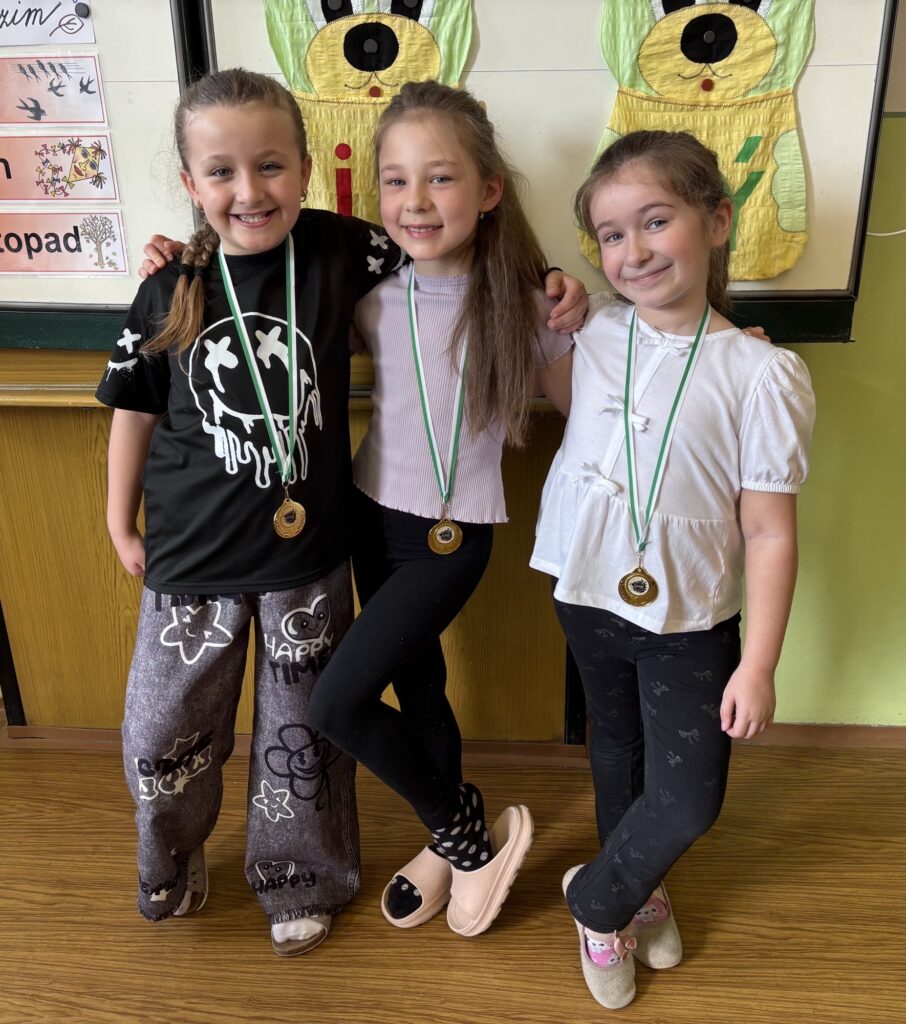 Simonka, Klárka a Valča získaly medaile za 1. místo v taneční soutěži.