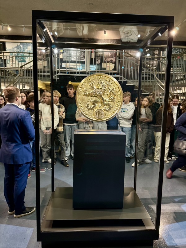 Dostali jsme se do trezoru, který střeží zlatou minci v nominální hodnotě 100 000 000 kč. Dozvěděli jsme se zajímavé informace o historii naší měny a na závěr si potěžkali zlatou cihličku. Drželi jsme tak v ruce 27 milionů korun.