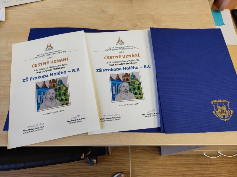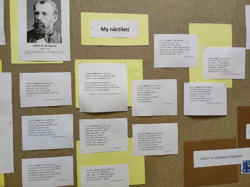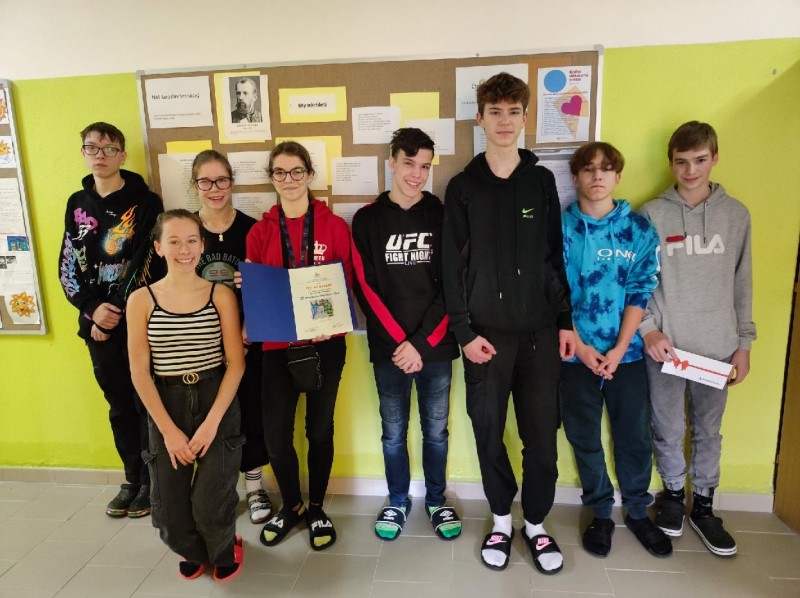 8 žáků z naší třídy se na konci šk.r. 2023 zúčstnilo soutěže vyhlášené MÚ Louny "Náš Jaroslav Vrchlický". Inspirovali se jeho básní Za trochu lásky šel bych světa kraj ze sbírky Okna v bouři. Co je pro ně tak důležité vyjádřili ve svých básničkách. Za tuto tvorbu byli nedávno oceněni a obdrželi poukázku do knihkupectví. Chválou nešetřím ani já, třídní.