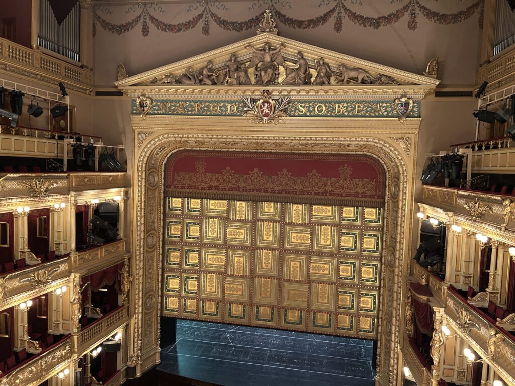 V pátek 21. března jsme se vypravili do Prahy na prohlídku Národního divadla. Paní průvodkyně nás seznámila s jeho historií a měli jsme možnost sedět v hledišti a na první galerii, vidět orchestřiště, střešní terasu s trigami a samozřejmě sklepní část se základními kameny.