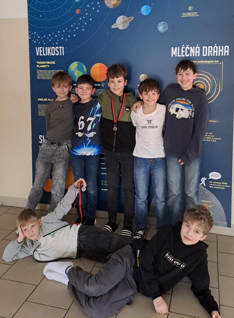 Kluci z naší třídy vyhráli okresní kolo ve florbale a postoupili do krajského kola.