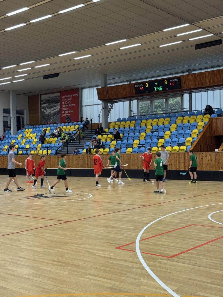 Dnes se ve sportovní hale v Lounech konal florbalový turnaj chlapců (6.–7. třída).