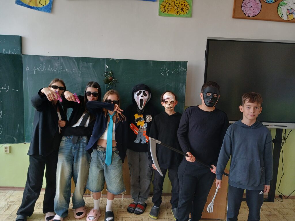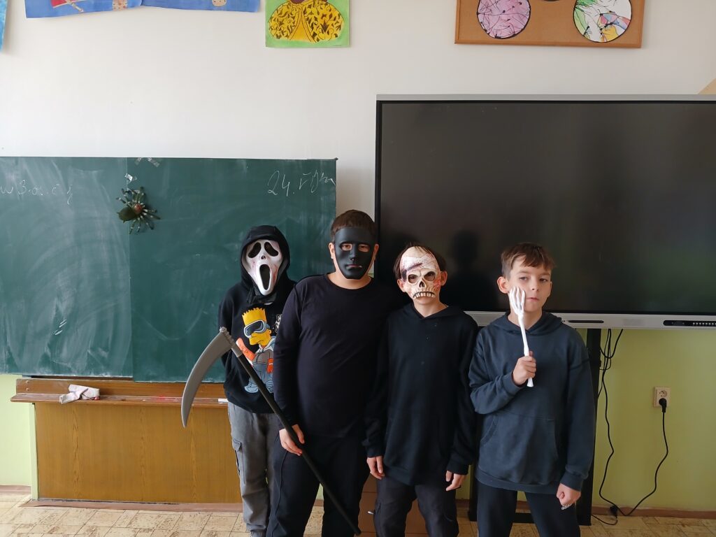 Dnes jsme si zpestřili běžnou výuku halloweenskými kostýmy. Do lavic usedly rozličné strašidelné postavy. Všichni si užili příjemnou atmosféru, která do školy přinesla trochu podzimní zábavy a kreativity. I když se nezapomnělo na učení, den byl díky originálním převlekům rozhodně veselejší.