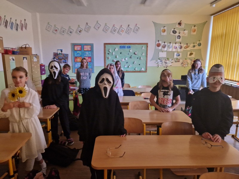31. října byla naše třída plná strašidel....moc jsme si všechny halloweenské aktivity užili a třída 8.D nám připravila i skvělý strašidelný program v prostorách školy.