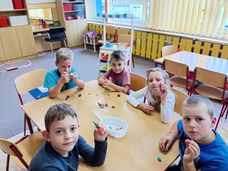 Ve školní družině jsme si hráli na zahradníky, kteří sklízejí podzimní úrodu. Ze zajímavých kousků brambor jsme tvořili ptáčky, příšerky a jiná zvířátka. Použili jsme větvičky z keříků a jehličnatých stromů. Poznávali jsme zeleninu a ovoce, kterou jsme prodávali, vařili a také jsme si zahráli pohádku : "O veliké řepě" . Každý jistě ocení i naši práci s nůžkami, lepidlem a barvičkami při podzimním vyrábění.
