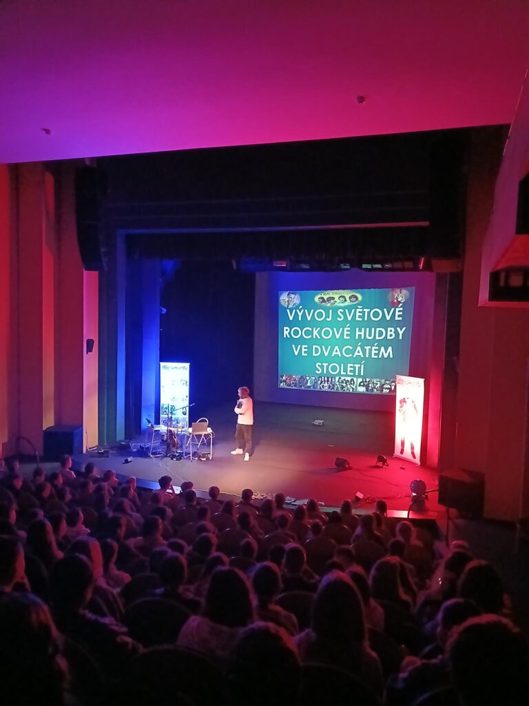 Představení bylo poutavé a zábavné – žáci se během něho dozvěděli, jak se rocková hudba vyvíjela od svých počátků až po současnost. Hudebníci představili klíčové styly a osobnosti. Součástí byly i živé ukázky skladeb, které dokreslovaly jednotlivé fáze vývoje žánru.