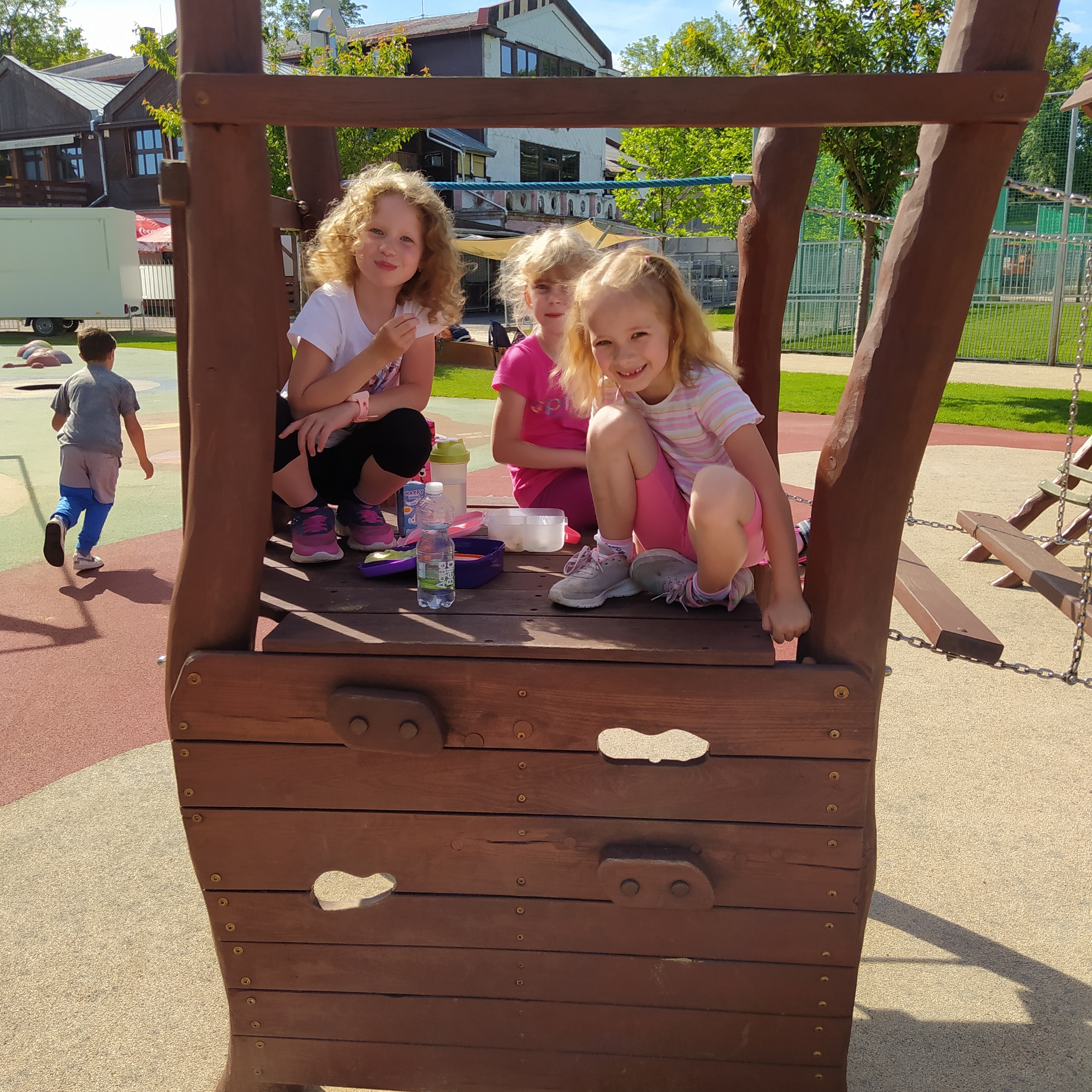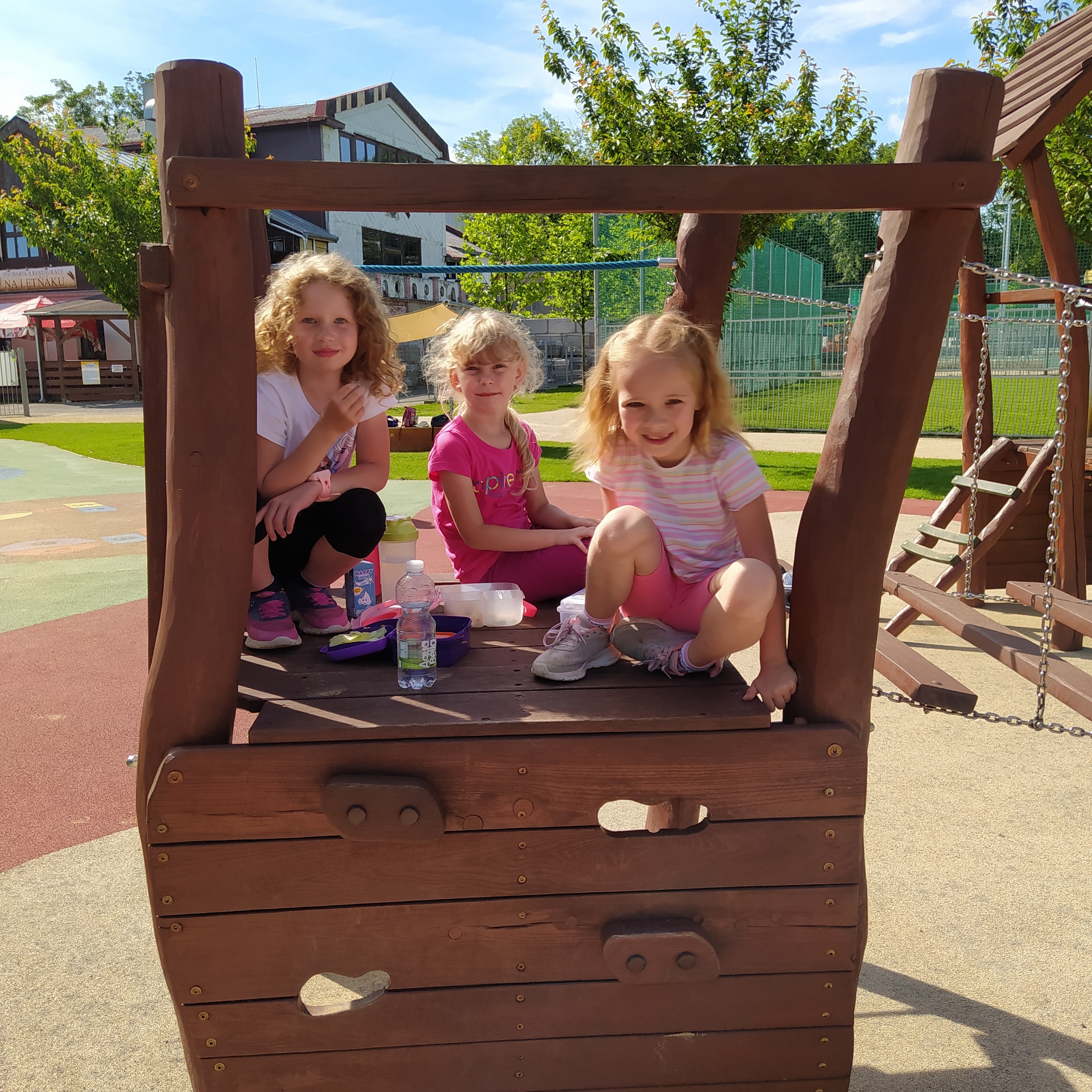 Dnes jsme si udělali pěší výlet na velmi oblíbené dětské hřiště - na Áju.