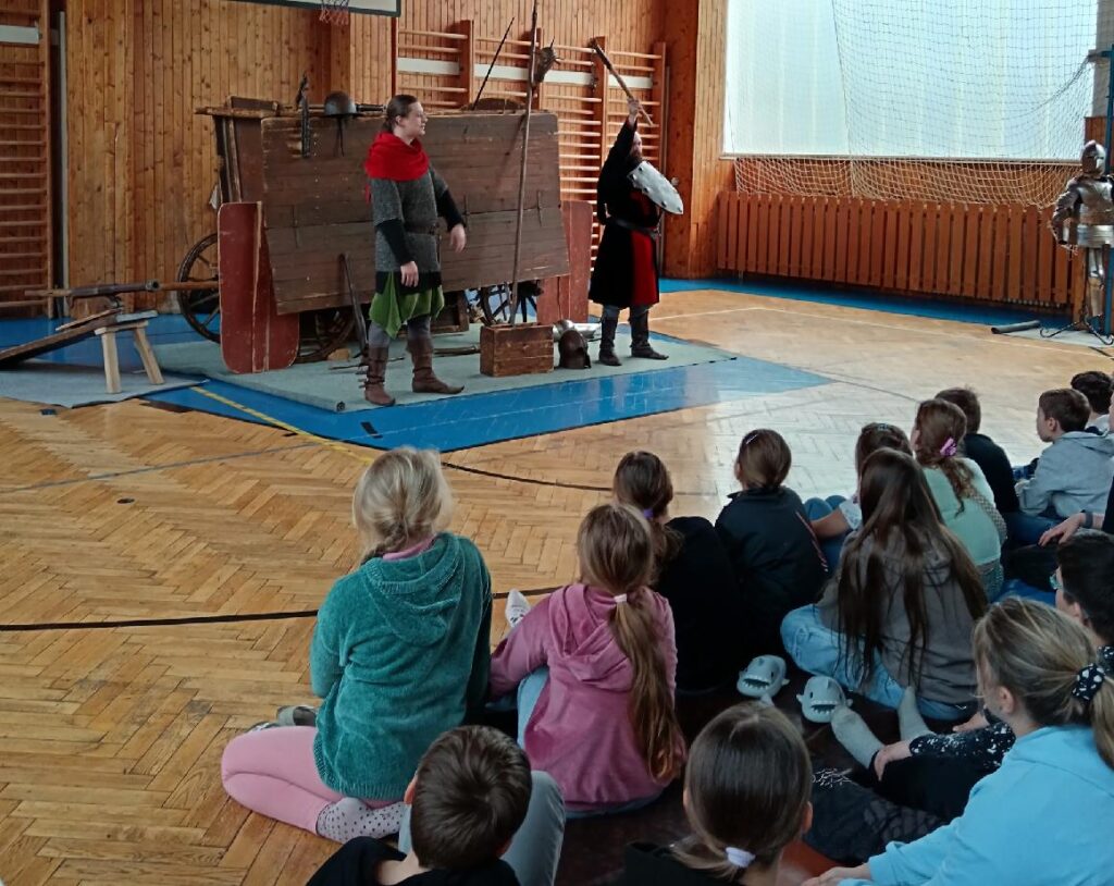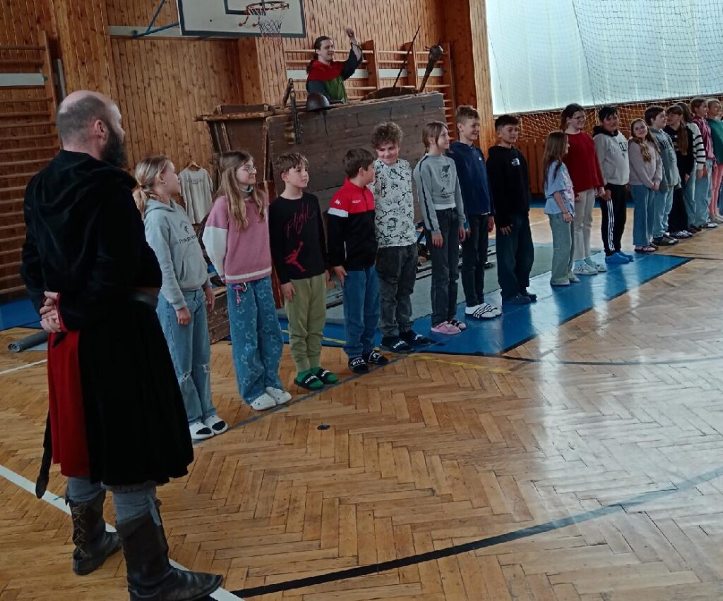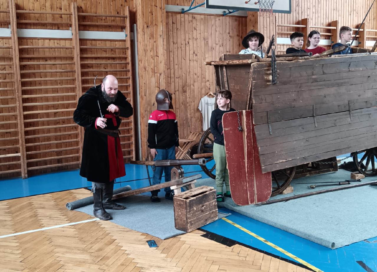 Tento týden jsme s ostatními třídami zhlédli v naší tělocvičně interaktivní představení "Jak válčili husité". Nejenže si žáci zopakovali dějiny, ale zároveň se tohoto "válčení" sami zúčastnili a dozvěděli se spoustu jiných zajímavostí.