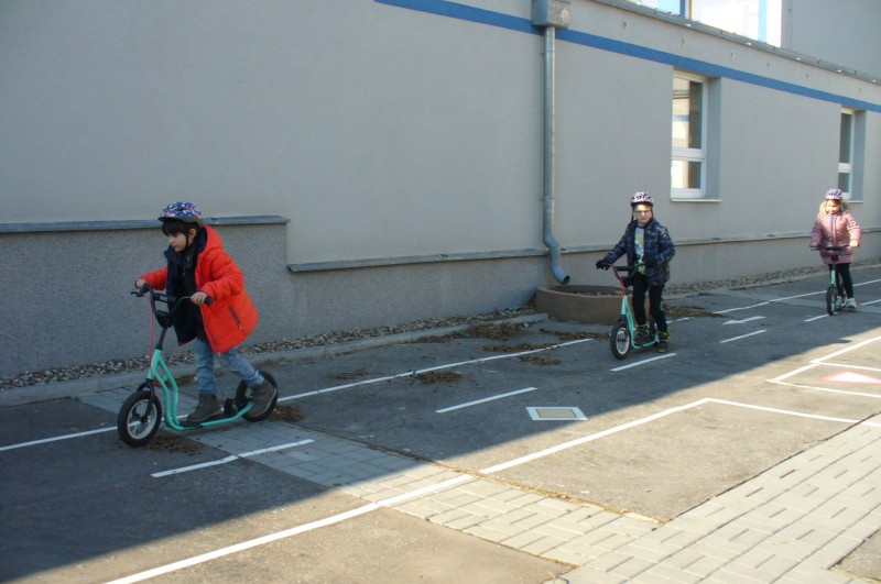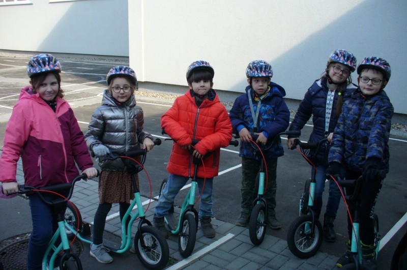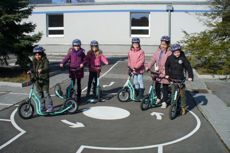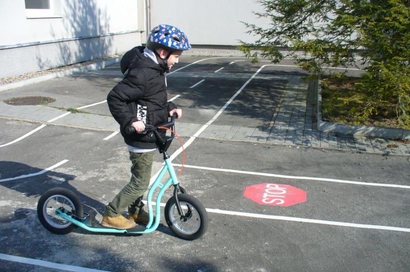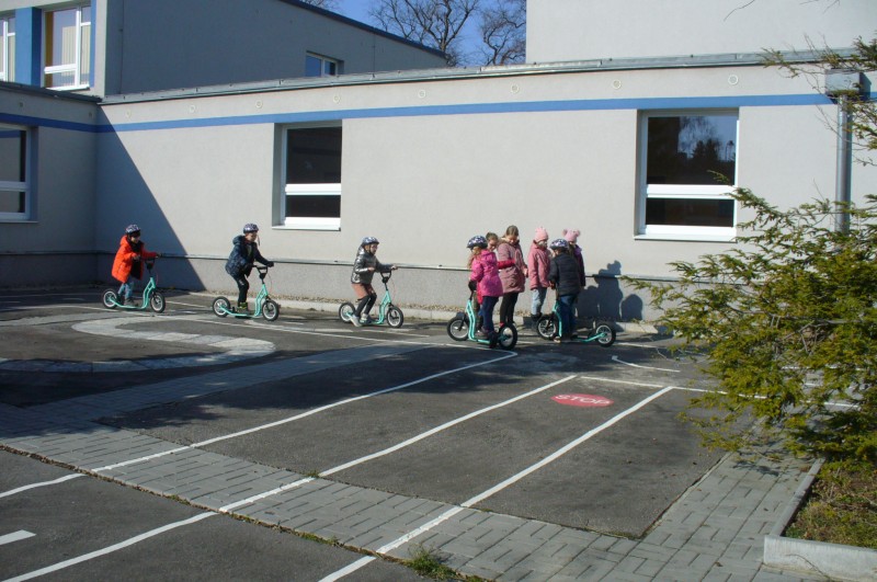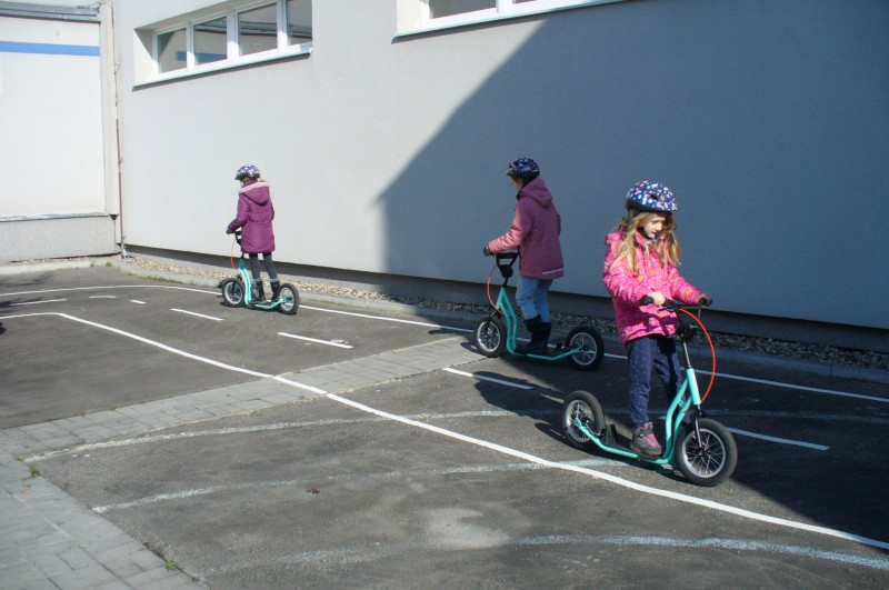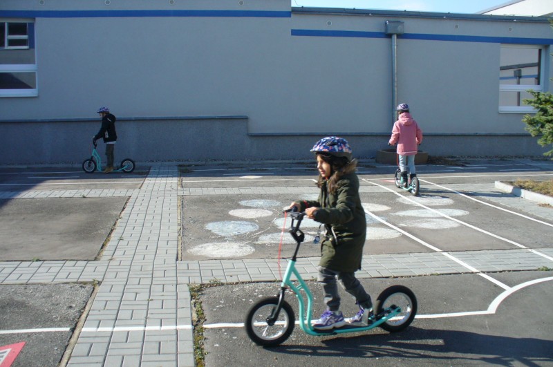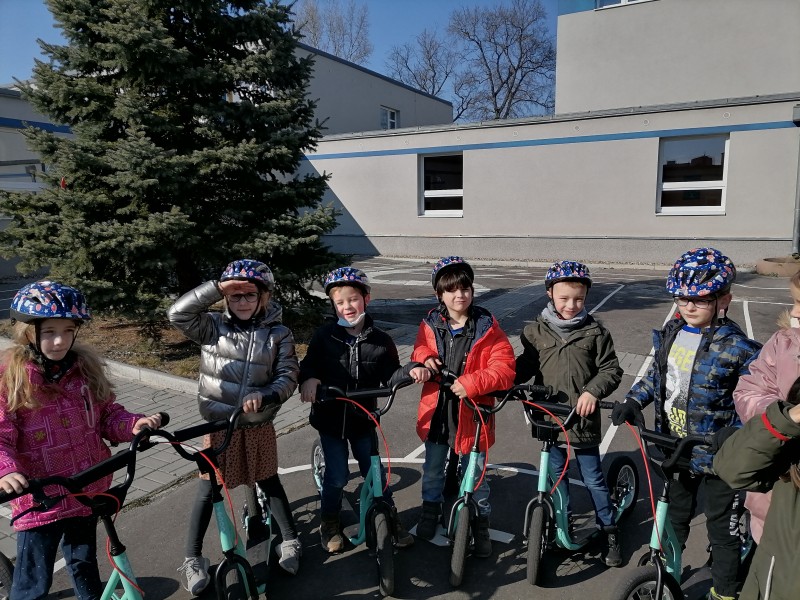 Jede, jede koloběžka, kdo ji nemá, všechno zmešká. Já se držím koloběžky, kdo ji nemá chodí pěšky.