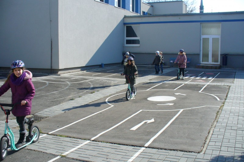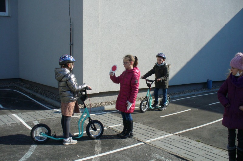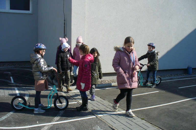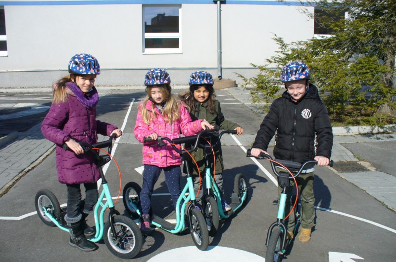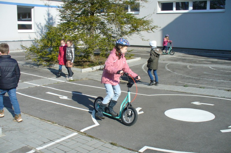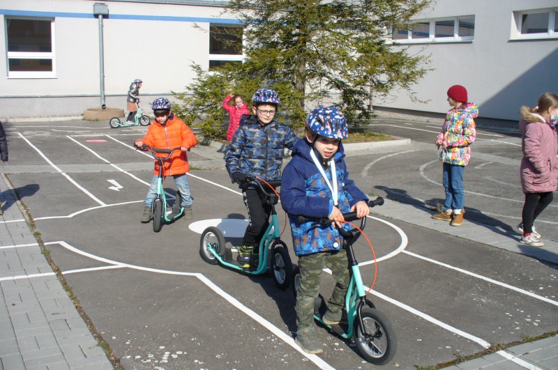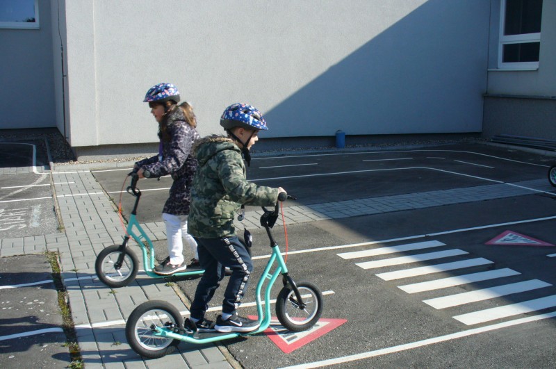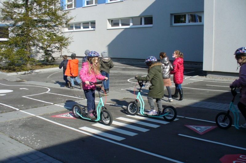 Jede, jede koloběžka, kdo ji nemá, všechno zmešká. Já se držím koloběžky, kdo ji nemá chodí pěšky.