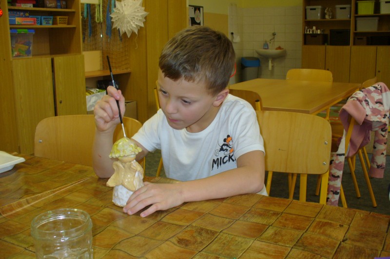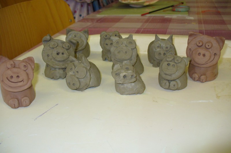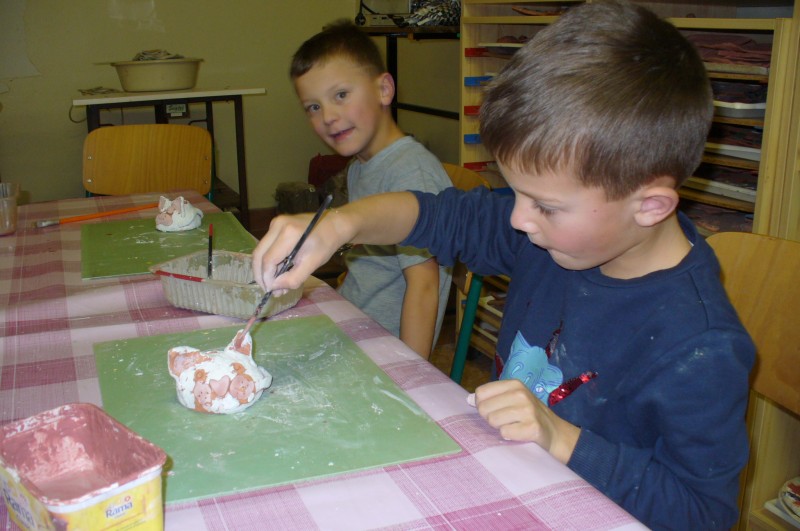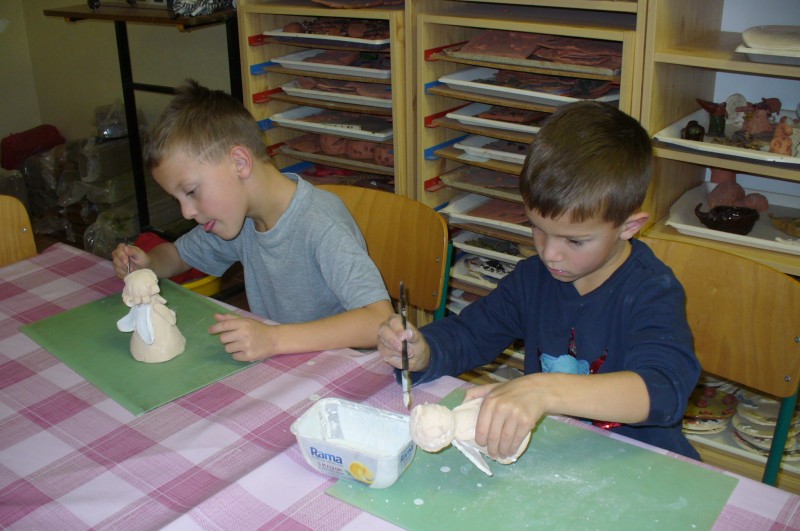 V prosinci děti na keramickém kroužku glazovaly a vytvořily prasátka pro štěstí. Po práci přišla zasloužená odměna a dva výrobky si děti odnášejí domů.