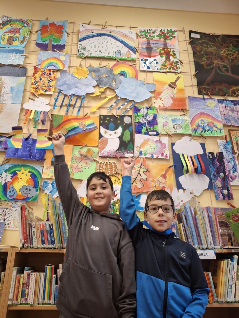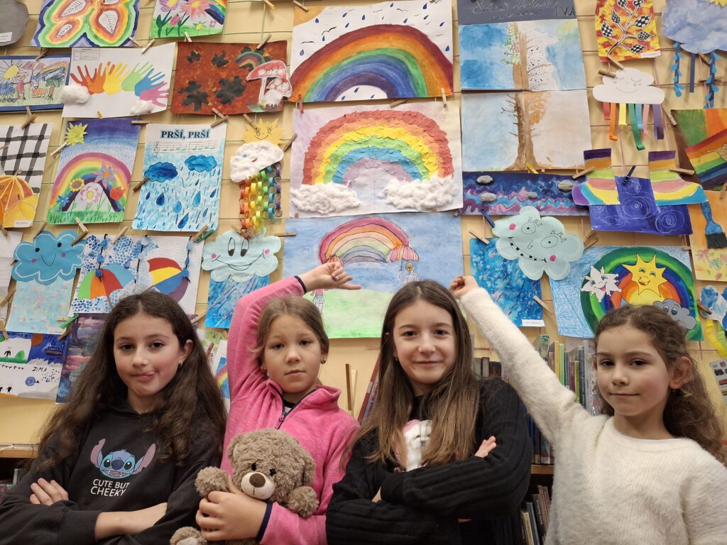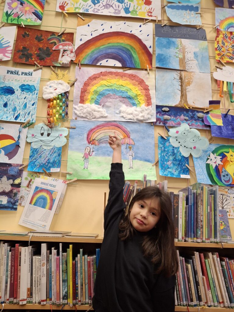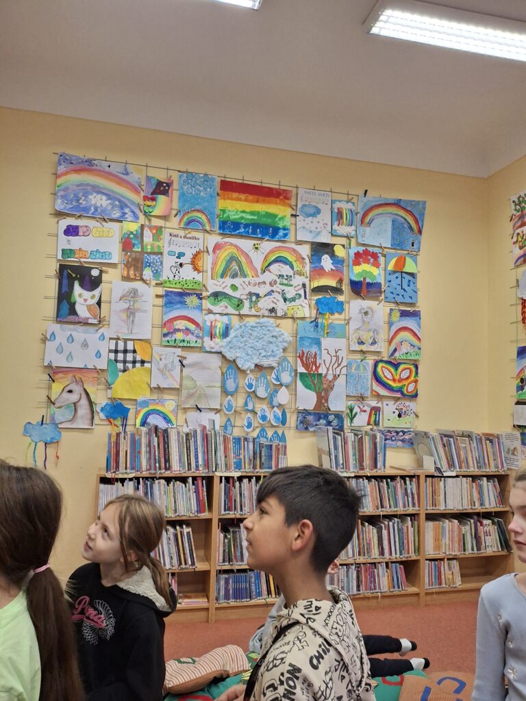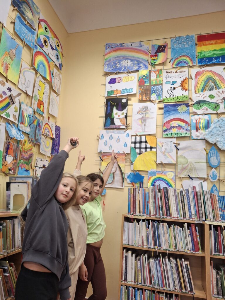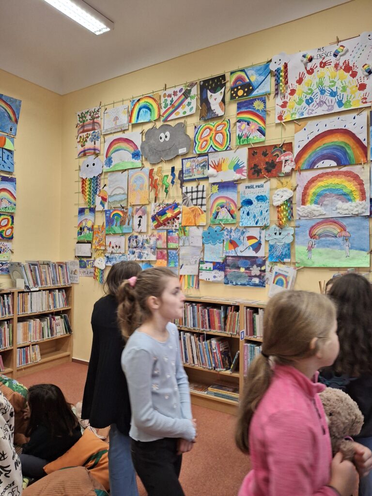 Vyšli jsme si do knihovny podívat se na výstavu našich obrázků na téma DUHOVÉ POČASÍ. Mezi výkresy i z ostatních škol si každý našel ten svůj. Děti to moc potěšilo.
