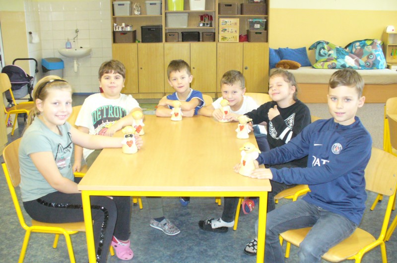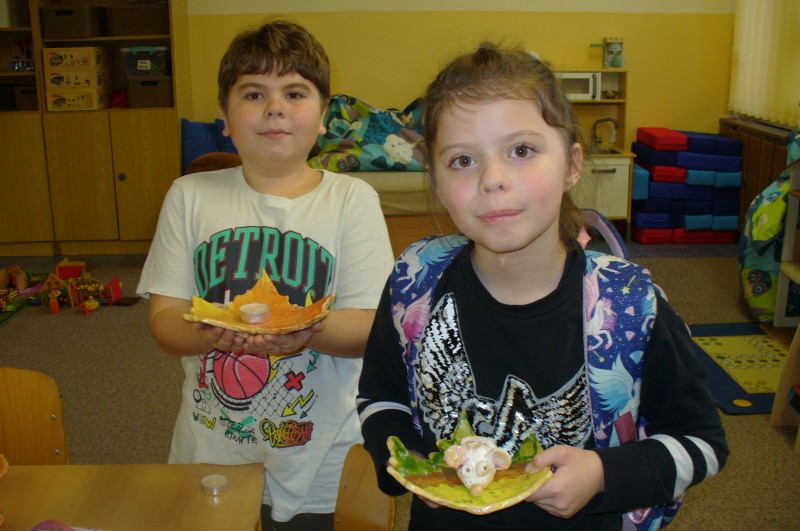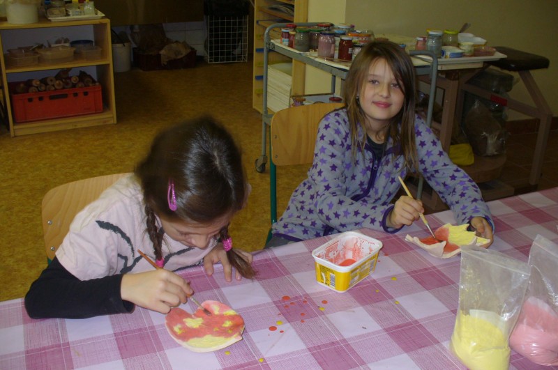 V prosinci děti na keramickém kroužku glazovaly a vytvořily prasátka pro štěstí. Po práci přišla zasloužená odměna a dva výrobky si děti odnášejí domů.