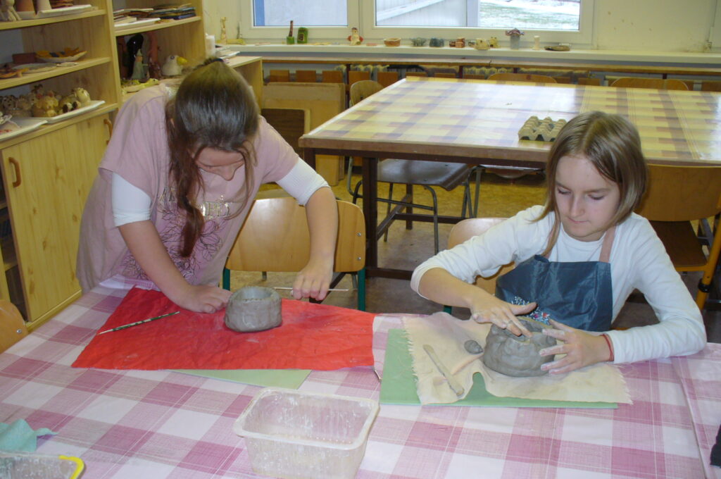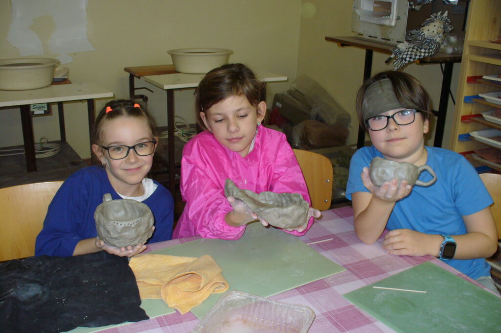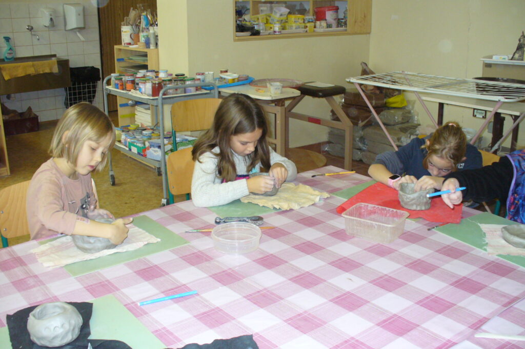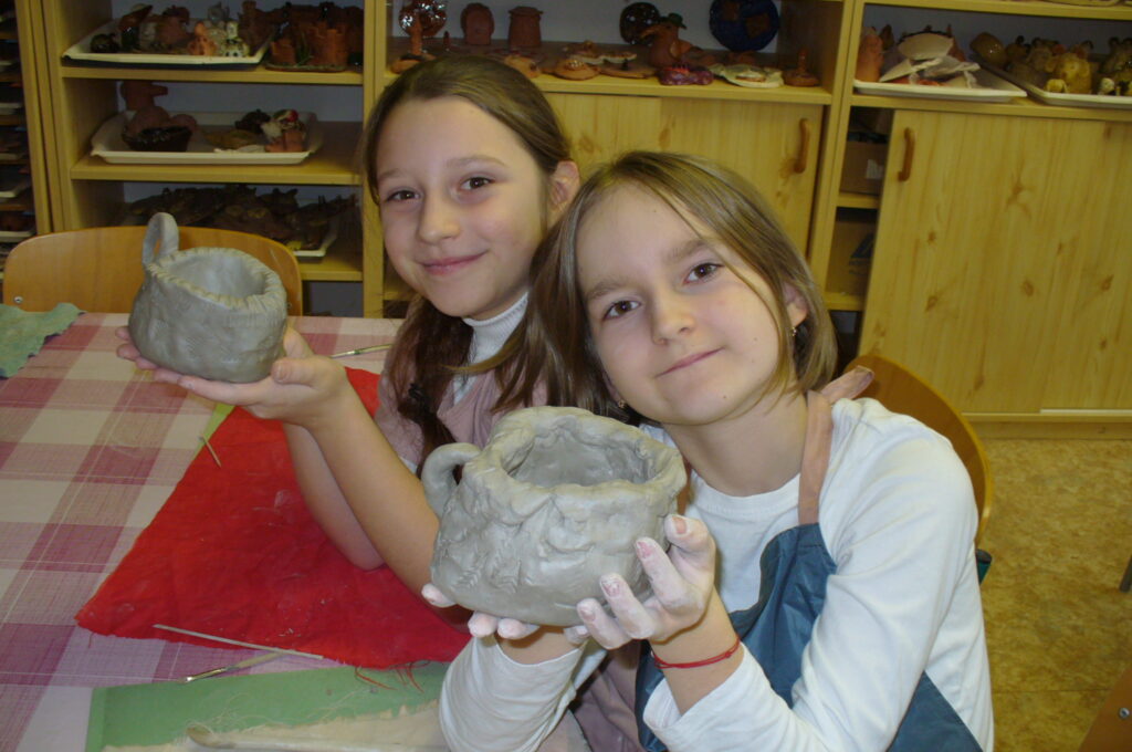 Ocitáme se v pravěku, kdy vznikly první nádoby sušené na slunci, později vypalované v otevřených ohništích. Pravěká keramika se vyznačuje funkčností. Misky a hrnky našich dětí určitě také našly své využití a udělaly radost.