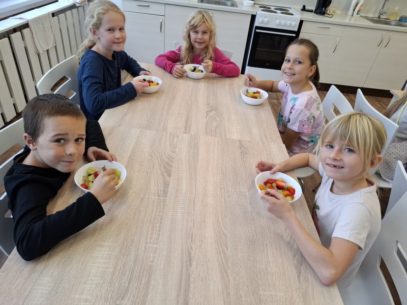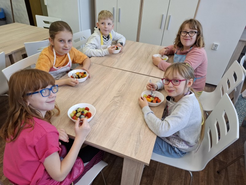 Kuchtíci se poprvé sešli, aby si připravili nějakou mlsku. Tentokrát jsme začali ovocným salátem, který je jednou z nejzdravějších dobrot. Salát si můžeme připravit ke svačince nebo jen tak na chuť.
